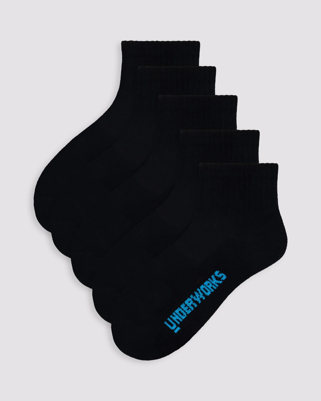 Kids Lightweight Sport Quarter Crew Sock 5 Pack - Underworks - Black