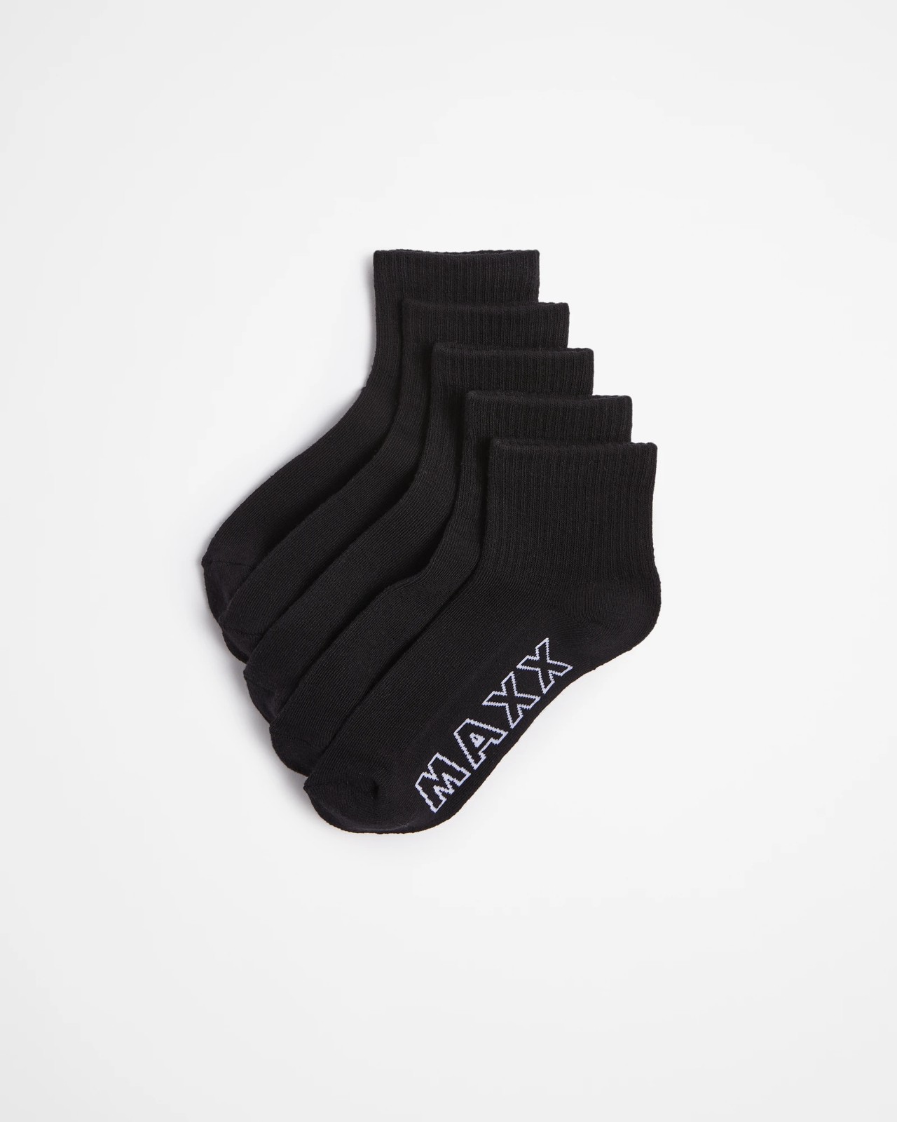 Step up your child’s comfort game with our Kids Maxx Sport Quarter Crew Socks. This pack includes five pairs, making everyday wear a breeze. Made from cotton-rich material, each sock offers a cushioned foot for extra comfort during playtime. Sized perfectly as quarter crew socks in sleek black, they're ideal for active days at school or adventures on the weekend. Don't miss out on giving your child the gift that keeps their feet happy all day long. Order now and see the smiles with every step!