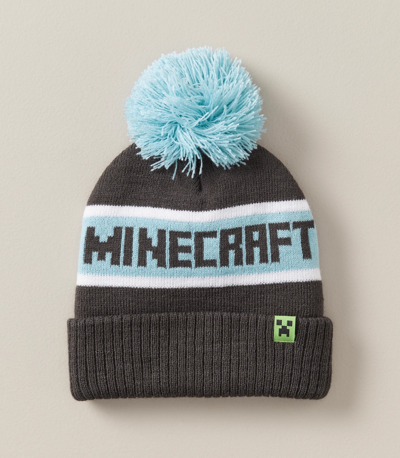The kids Minecraft licensed beanie is made from an acrylic fabrication designed to keep your head warm. It features a pom pom on the top of the head, a fold over bottom and MINECRAFT knitted across the centre.