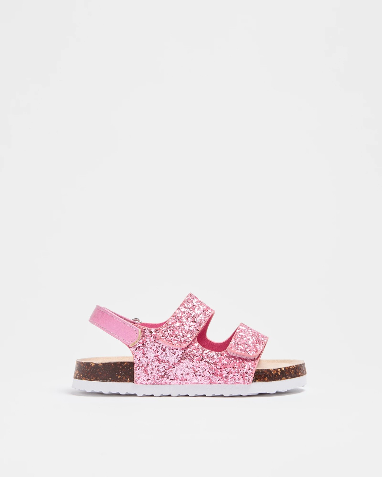 Step into comfort and style with these Kids Moulded Cork Sandals. These sandals are crafted from PETA-approved vegan materials, featuring a moulded cork footbed for ultimate comfort. The open toe design and double touch fastening straps ensure easy wear, while the stability of the touch fastening strap around the back of the foot provides security with every step. The sandals also come with a durable, nonslip sole, perfect for active little ones. Treat your little fashionista to a trendy and comfortable footwear option!