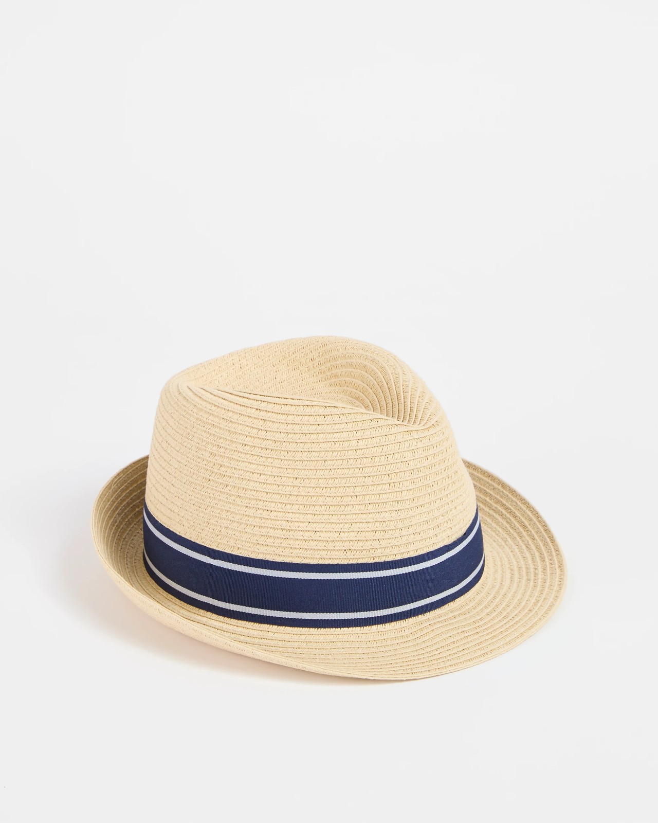 Let your child step out in style with this charming paper straw trilby hat. Made from a clever blend of paper and polyester, it boasts a cool woven texture for an easygoing look. The mid-width brim, turned up at the back, adds a playful twist to the classic trilby shape. A striking navy and white ribbon circles the hat, offering a touch of brightness to any outfit. The comfortable inner band ensures a snug fit, keeping your little one happy during all their adventures. Add this fun accessory to their wardrobe and watch their confidence grow.