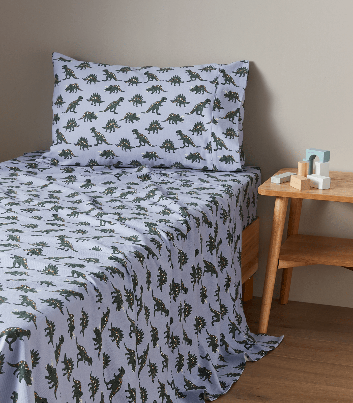 Kids Printed Flannelette Sheet Set - Kaleo Dinosaur