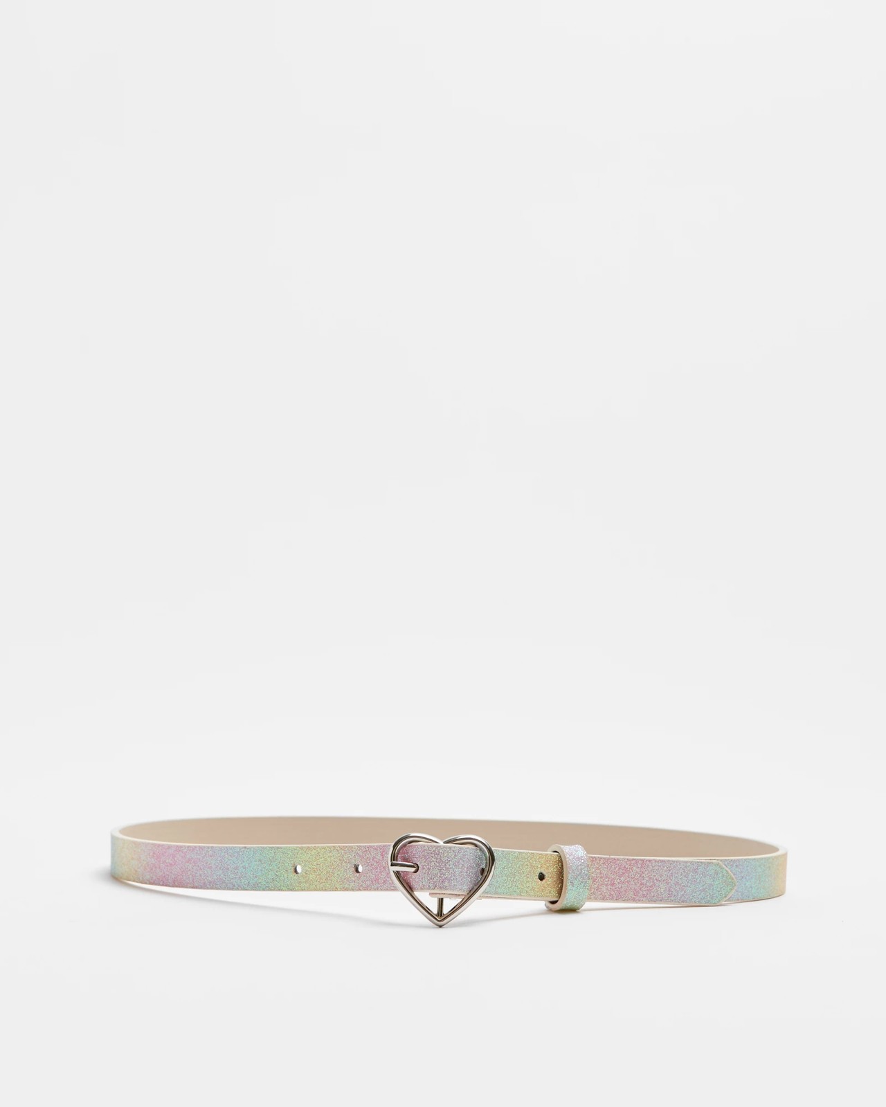 Make sure your little one is always in style with this fun and fashionable Kids Rainbow Heart Belt from Target Kids! Crafted from a thermoplastic polyurethane/polyurethane blended fabrication, this belt is made with PETA-approved vegan material, so you can feel good about your purchase. The rainbow all over glitter design will add a touch of sparkle to any outfit. With the love heart buckle end closure and the belt holder loop, you can be sure that your child will get plenty of wear out of this stylish accessory!