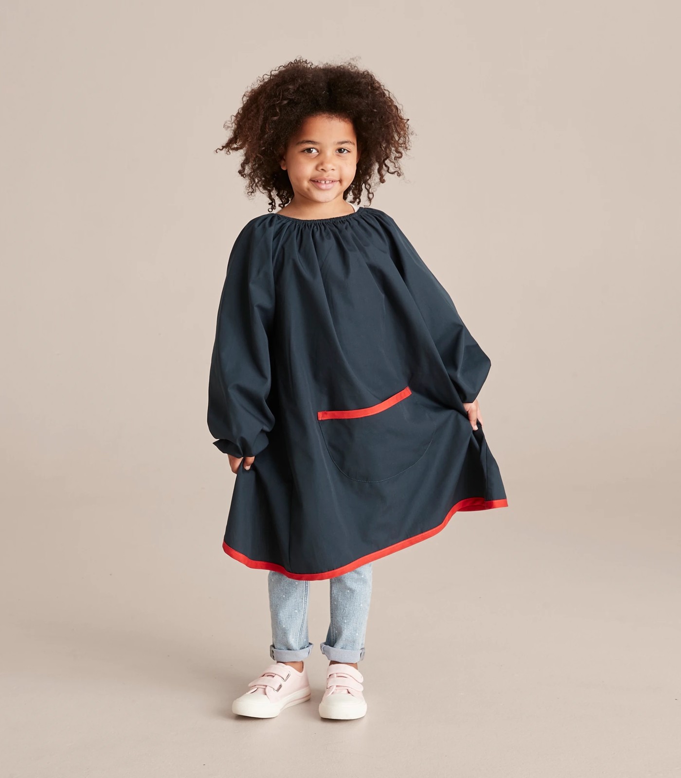 There will be no more paint spills on their clothes with this classic polyester and cotton art smock in colourful, contrasting k colours. Featuring elastic gathering at the neck and sleeves, a front patch pocket and a back opening for easy wear and removal.