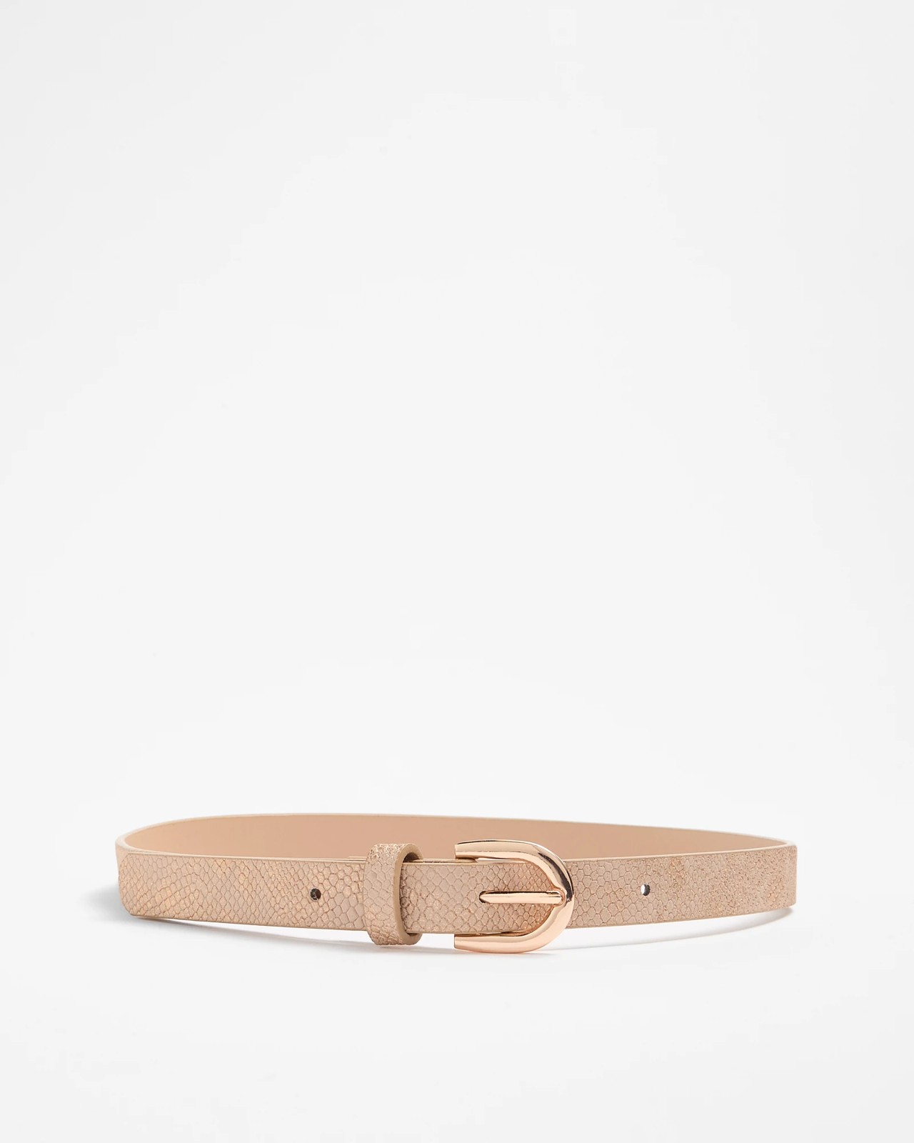 Enhance your child's wardrobe with our Kids Snakeskin Pattern Belt. This stylish accessory features an elegant gold snakeskin design that stands out while maintaining a neutral tone perfect for any outfit. Made from a polyester and polyurethane blend, this belt ensures both comfort and a lasting finish. The adjustable fit and sleek, thin shape with a small gold rectangular buckle make it not only practical but a fashionable addition to jazz up your child’s attire. Ideal for all occasions, this belt will effortlessly complete any look. Don’t miss out – make this chic piece a staple in your child's wardrobe today.
