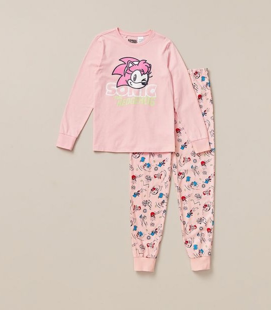 Collect the family set with the pink Kids Sonic The Hedgehog Matching PJ Set. Featuring a pink long sleeve top with Sonic print to chest and matching all over print pink pants. Available separately in mens, womens and kids sizes.