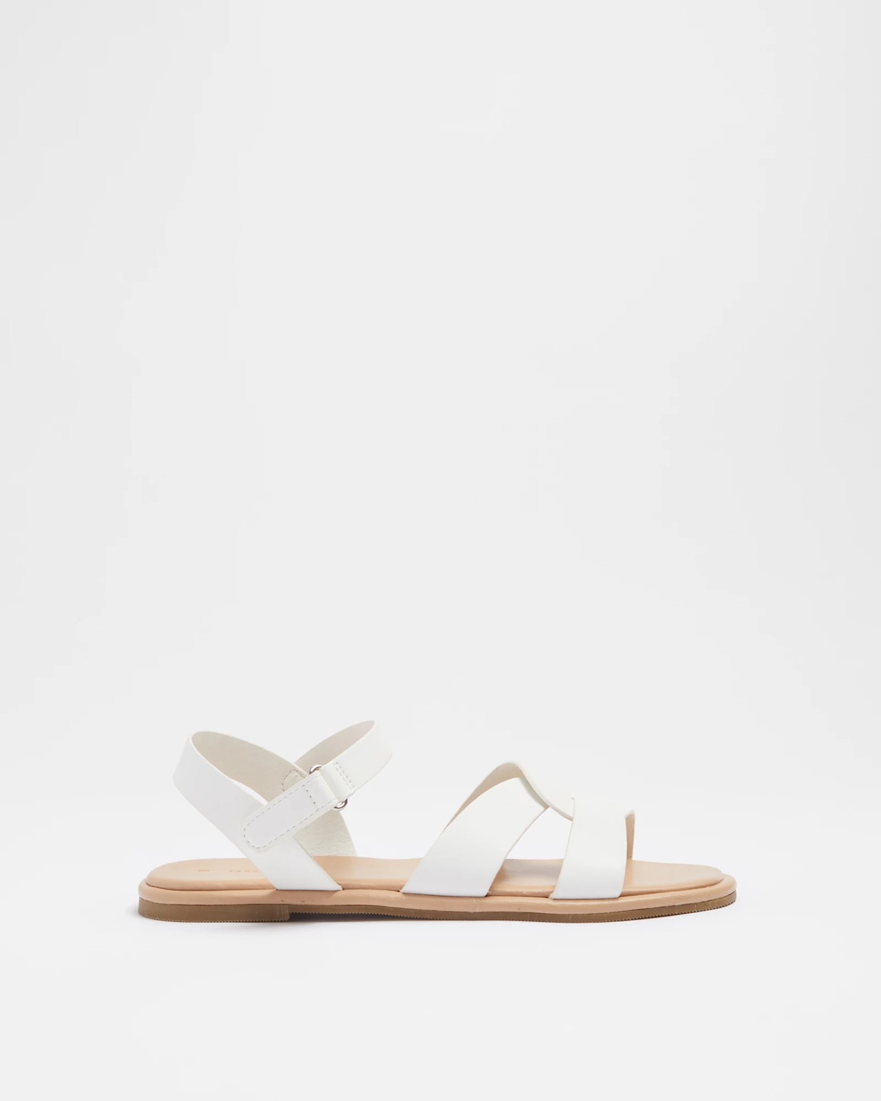 This stylish sandal is perfect for any occasion! Crafted with a synthetic leather look upper, open toe and cross strap design to the vamp, this sandal is sure to turn heads. The adjustable self-fastening ankle buckle ensures a secure fit all day and night. An open back with heel strap and padded inner sole provide extra comfort and support. The flexible non-slip sole ensures sure footing on any surface. Step out in style with Kids Youth Lola Sandal!