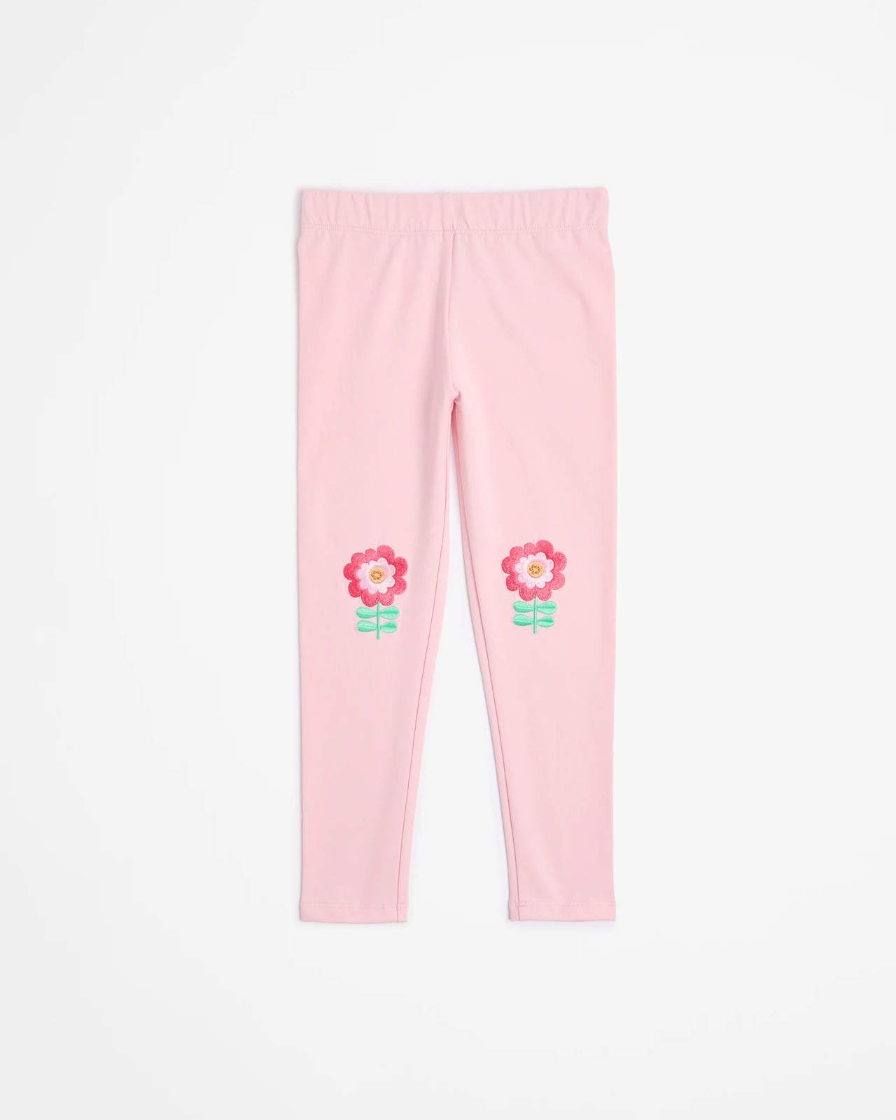 Step out in style with these charming Knee Patch Flower Leggings, perfect for your little fashionista. These soft cotton leggings offer a comfortable regular fit with added stretch for all-day wear. The delicate embroidered flower patch on the knees adds a fun touch to the design. Featuring a stylish elastic waistband, these full-length leggings in pretty pink are a must-have for any trendy wardrobe. Treat your little one to these leggings today and let them showcase their unique style with confidence.
