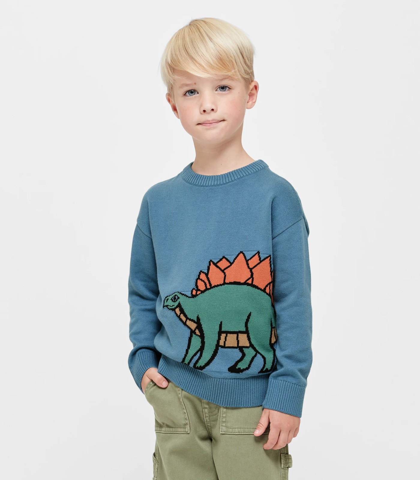 Get ready for a awesome winter with our Knit Intarsia Jumper. Made from soft and cosy cotton, this jumper is designed for boys who love adventure. The regular fit and crew neck ensure comfort, while the long sleeves keep them warm on chilly days. Featuring a colourful intarsia design on the front, it adds a playful touch to any outfit. Whether they're exploring the prehistoric world or having fun at a playdate, this jumper is a must-have for little trendsetters. Upgrade their winter wardrobe and let their imagination run wild with our Knit Intarsia Jumper. Order now and bring excitement to their closet!