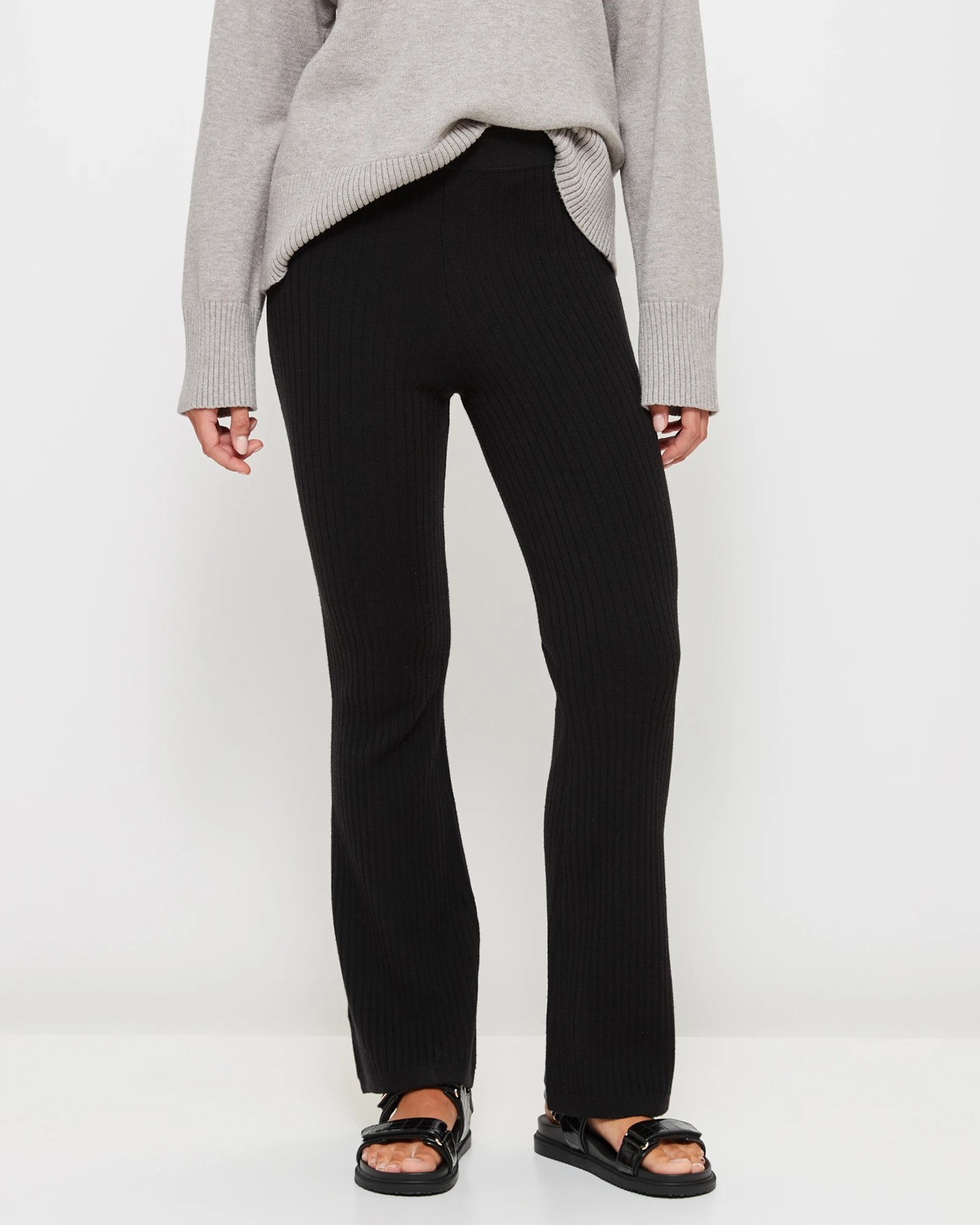 Discover new levels with the Knit Jazz Flare Pants from Lily Loves. Designed with a slim fit, these pants effortlessly hug your curves while the high-waisted, ribbed elastic waistband ensures comfort and style. The all-over knit ribbed design adds a touch of sophistication, making them perfect for both casual outings and chic gatherings. Whether you're meeting friends or enjoying a relaxed weekend, these flared-leg pants with a straight hemline promise to enhance your look. Order now and step out in confidence with Lily Loves.