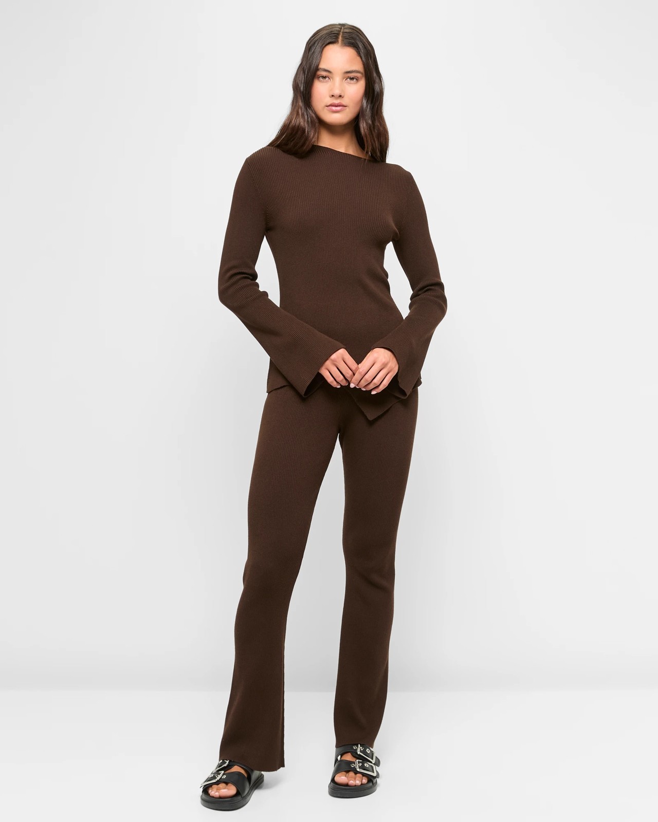 Step into elegance with the Knit Jazz Flare Pants from Lily Loves. Featuring an all-over knit design, these trousers are made from a durable blend of viscose and nylon, including LENZING ECOVERO branded viscose fibres for added softness. The high-waisted style with a thick elastic waistband ensures a comfortable and secure fit. Their flared legs and full length make them perfect for both casual and formal settings. Elevate your wardrobe and enjoy fashion that feels as good as it looks.