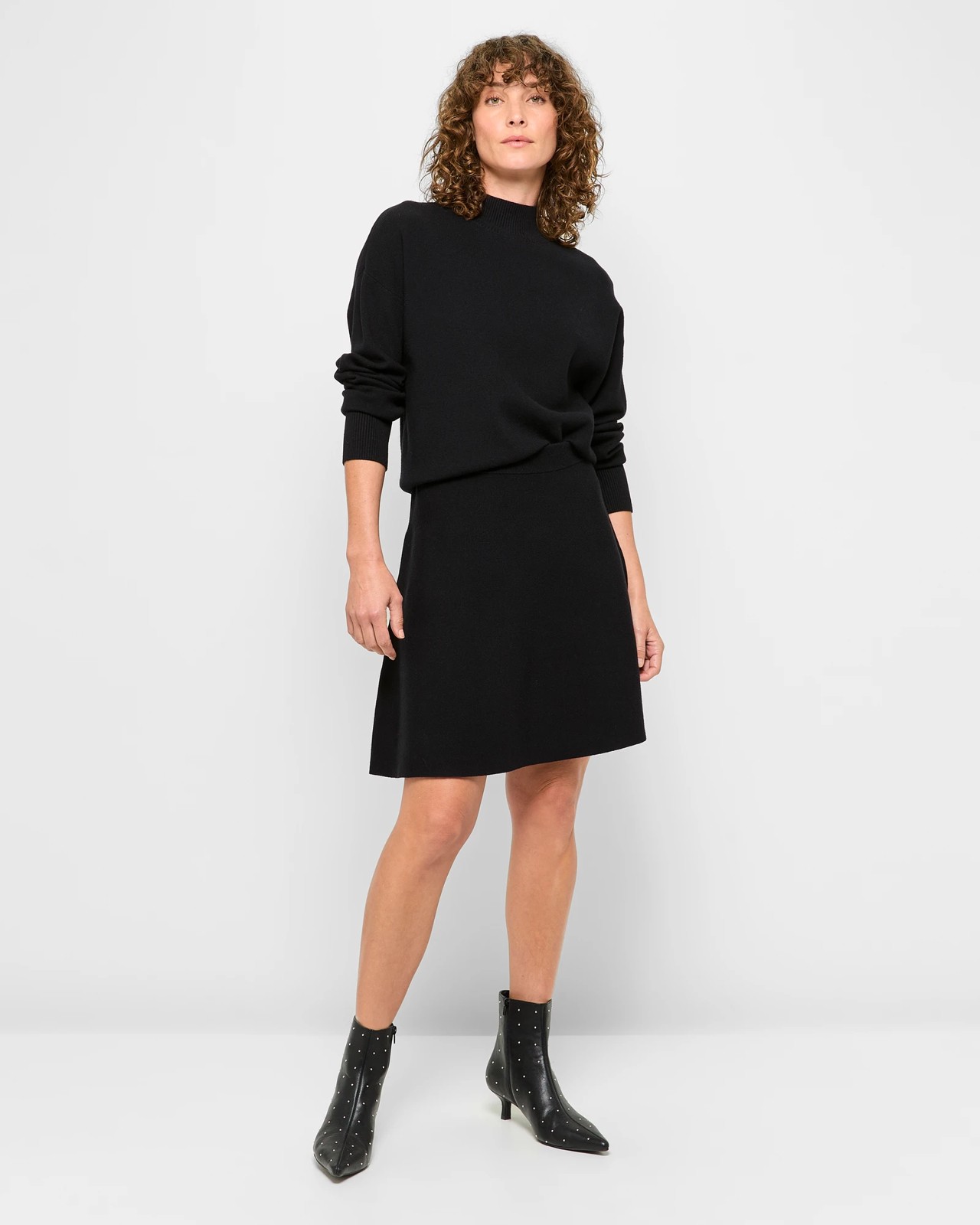 Step out in style with our Knit Mini Skirt. Made from a comfortable blend of viscose, polyester, and nylon, this skirt offers a regular fit with an a-line cut that complements your figure beautifully. The thick ribbed elastic waistband ensures a snug fit, while the all-over knit texture adds a unique touch. Ideal for casual outings or dressier occasions, it pairs perfectly with any top. Add this versatile and chic mini skirt to your wardrobe today.