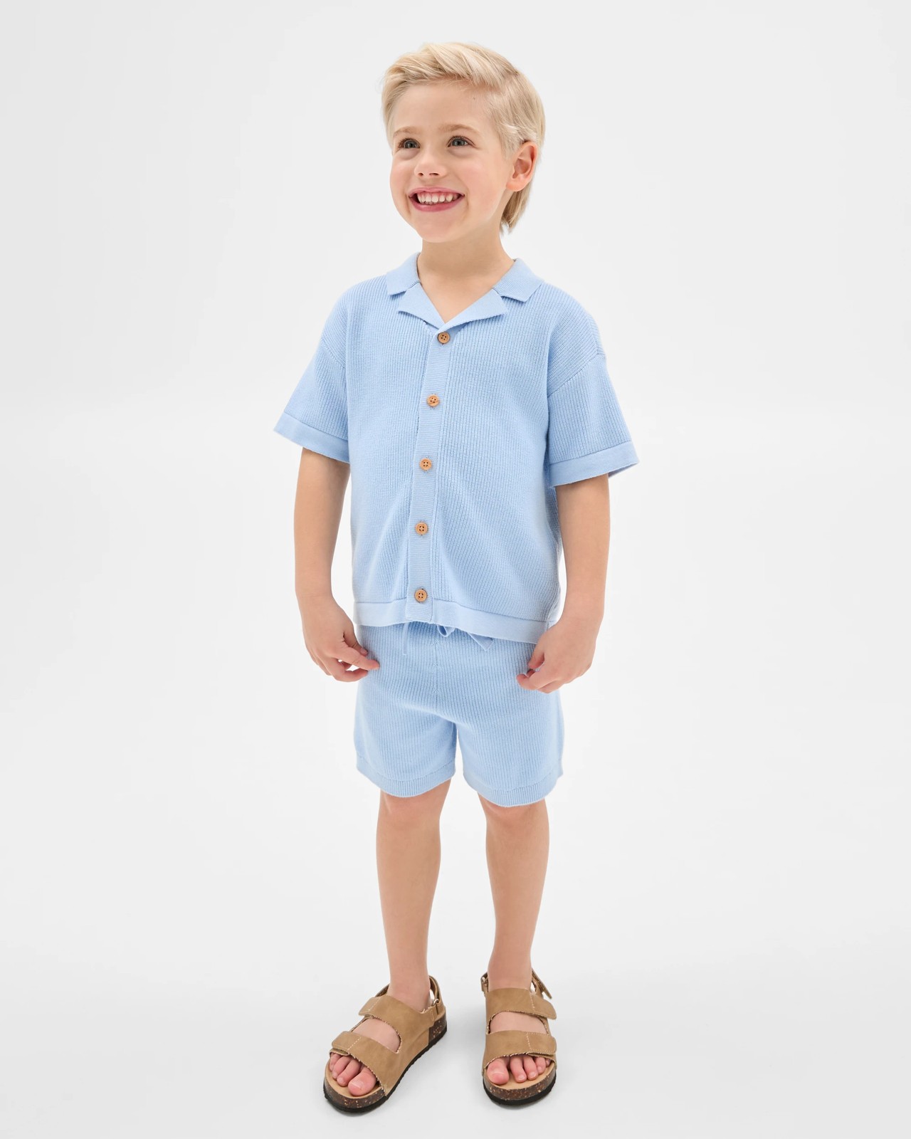 Discover comfort and style combined with our Knit Shirt and Short 2 Piece Set. This outfit features a collared knit shirt with a button-down front and short sleeves, ensuring easy movement. The matching shorts, designed with an elastic waistband and drawcord, provide a perfect fit for endless play. This versatile set will effortlessly become a wardrobe favourite. Don't miss out on giving your little one the perfect mix of fashion and functionality.