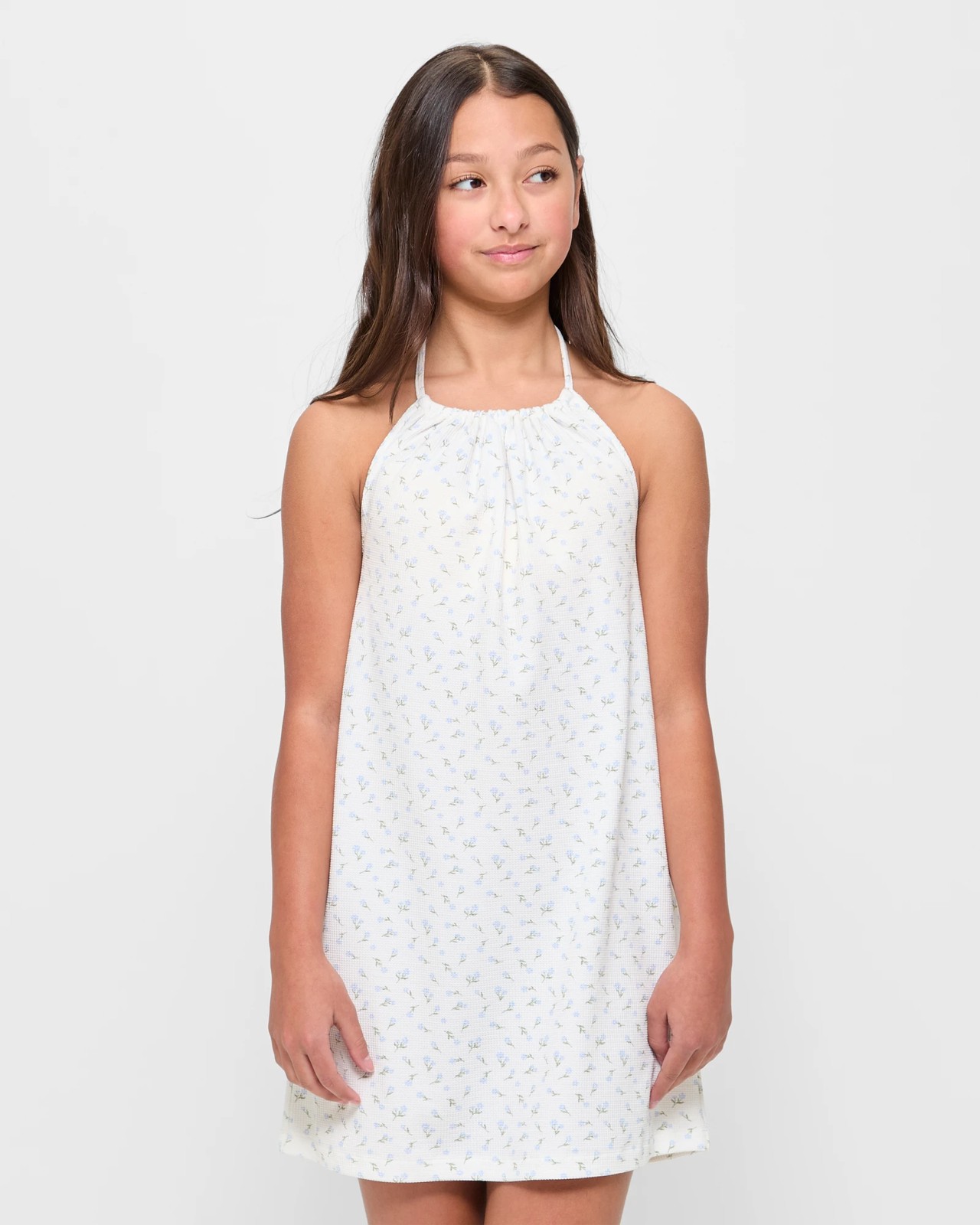 Step into a blend of comfort and style with our Knit Waffle Halter Dress. Designed with a playful tie halter neck and an elastic back waistband, this dress fits like a dream. Perfect for any occasion, its mini length adds just the right amount of flair. Make this chic piece your go-to outfit and turn heads wherever you go.