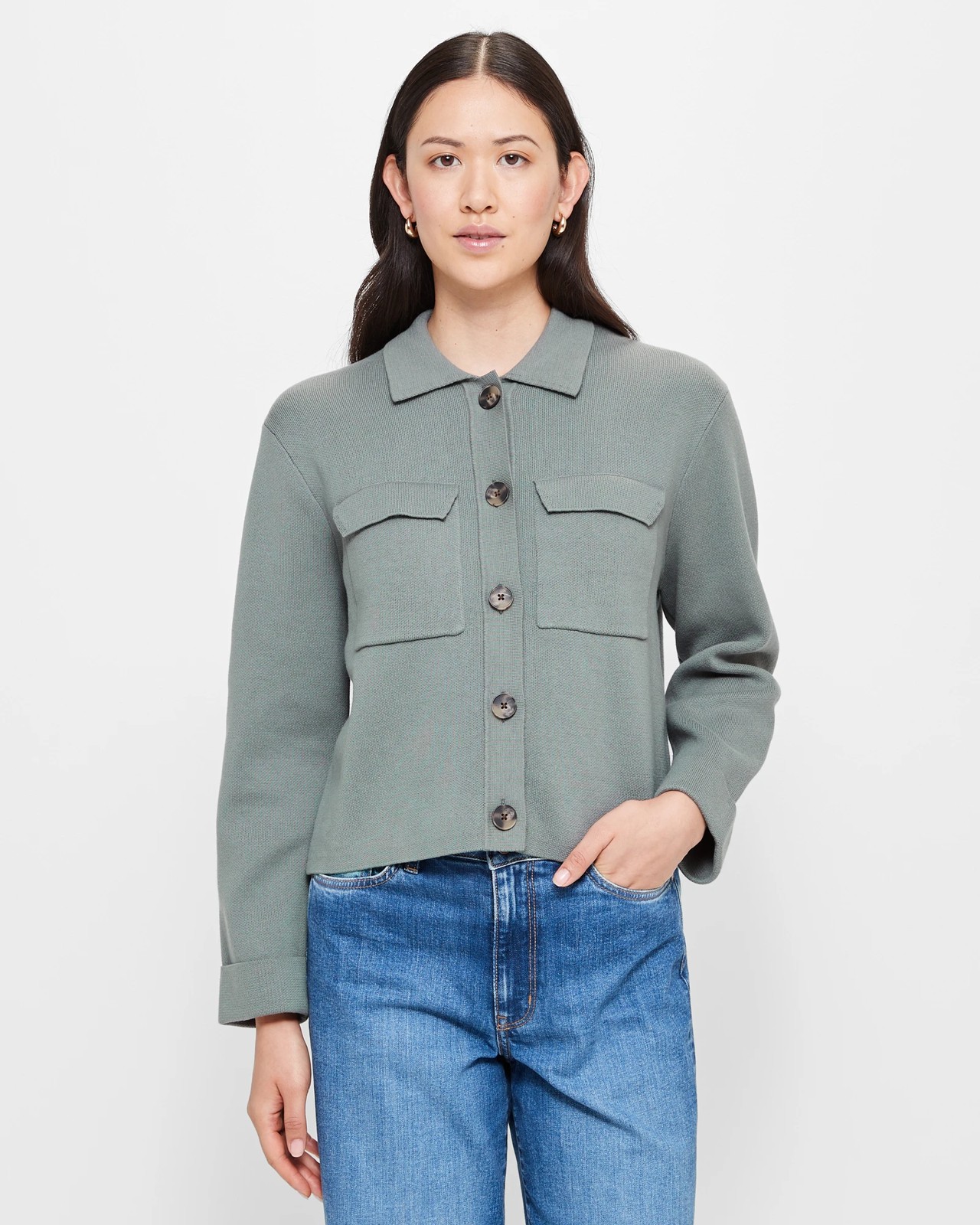 Introducing our Knitted Jacket for women, a perfect addition to your wardrobe. This jacket is made from a high-quality cotton fabrication, ensuring comfort and durability. Its regular fit is designed to flatter your silhouette, while the all-over knit design adds a touch of elegance. With its round collared neckline and button-through front, this jacket is both stylish and functional. The long roll cuff sleeves and fold-over top chest pockets add a trendy detail. Complete your look with this versatile jacket that can be dressed up or down for any occasion. Upgrade your wardrobe today with our Knitted Jacket!