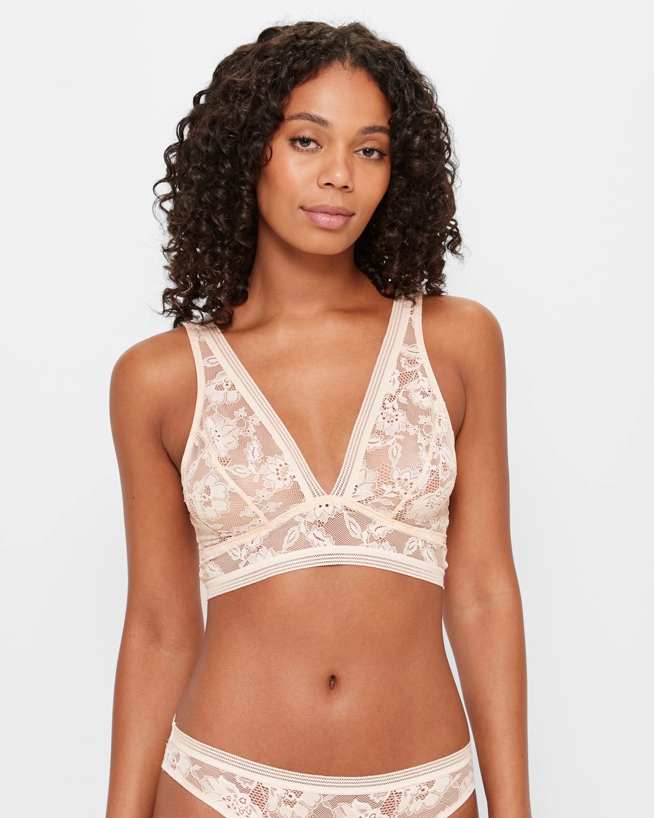 For a great pull on design with a feminine look, the lace soft cup bralette has stretch for an easy pull on, an all over lace design and thick shoulder straps for comfort and support. Pair with the matching briefs to complete your look (sold separately).