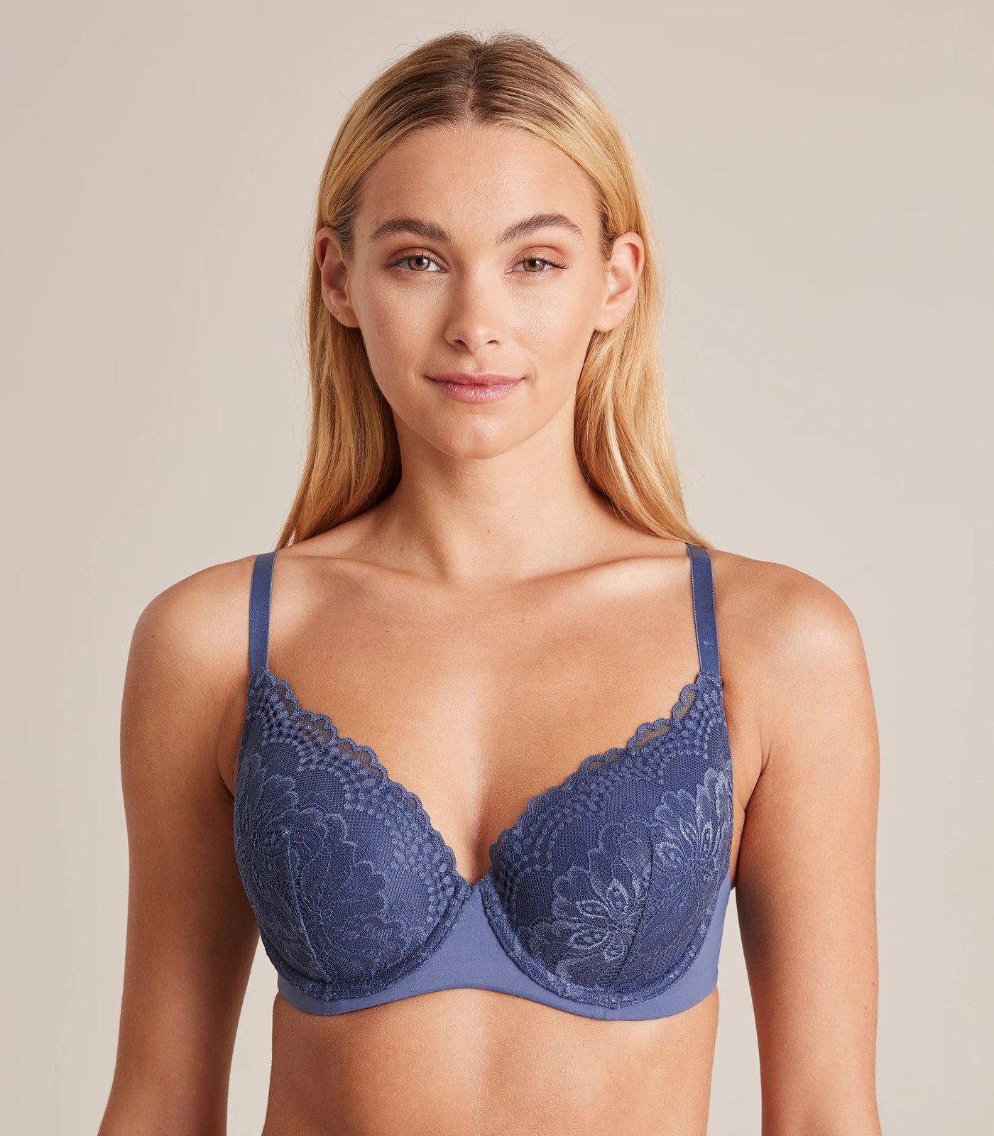 The lace t-shirt bra will leave you feeling comfortable throughout the day and is the perfect bra to wear under tight fitting clothes. It features a full coverage cup with light padding, a lace covered front and a soft silky material on the back and sides.