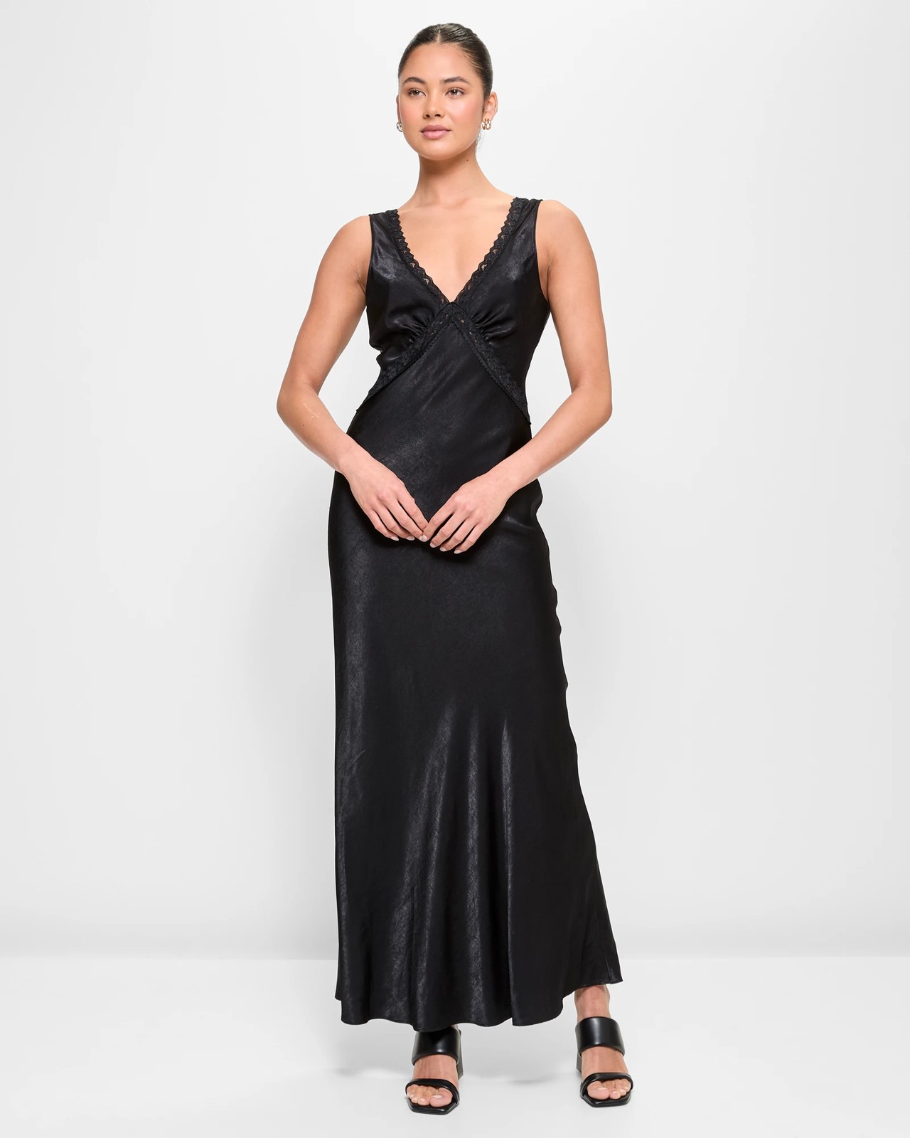 Indulge in luxurious comfort with the Lily Loves Lace Trim Slip Dress. Experience the soft satin feel against your skin as you slip into the slim-fit design, elegantly enhanced with lace accents along the neckline and sleeves. The pleating detail on the bust adds a touch of sophistication, while the full-length cut and straight hemline provide a classic finish. Elevate your style and grace every occasion with confidence in every step.