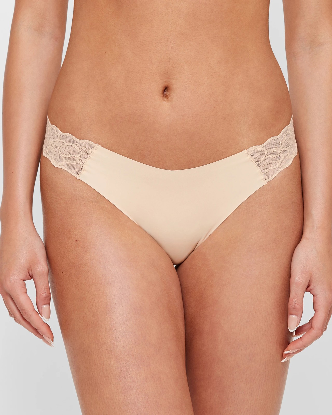 Stay comfy and stylish in our Lily Loves Lacey No Show Brazilian Briefs! These briefs offer a minimal seam design with maximum stretch for comfort, making them perfect for everyday wear. The soft-to-the-touch fabric is cut into a Brazilian silhouette and is available in many colours and prints. The waistband is flat elastic and the sides are adorned with lacey detailing. These briefs offer high cut legs and cheeky back coverage so you can feel confident wearing them all day long!