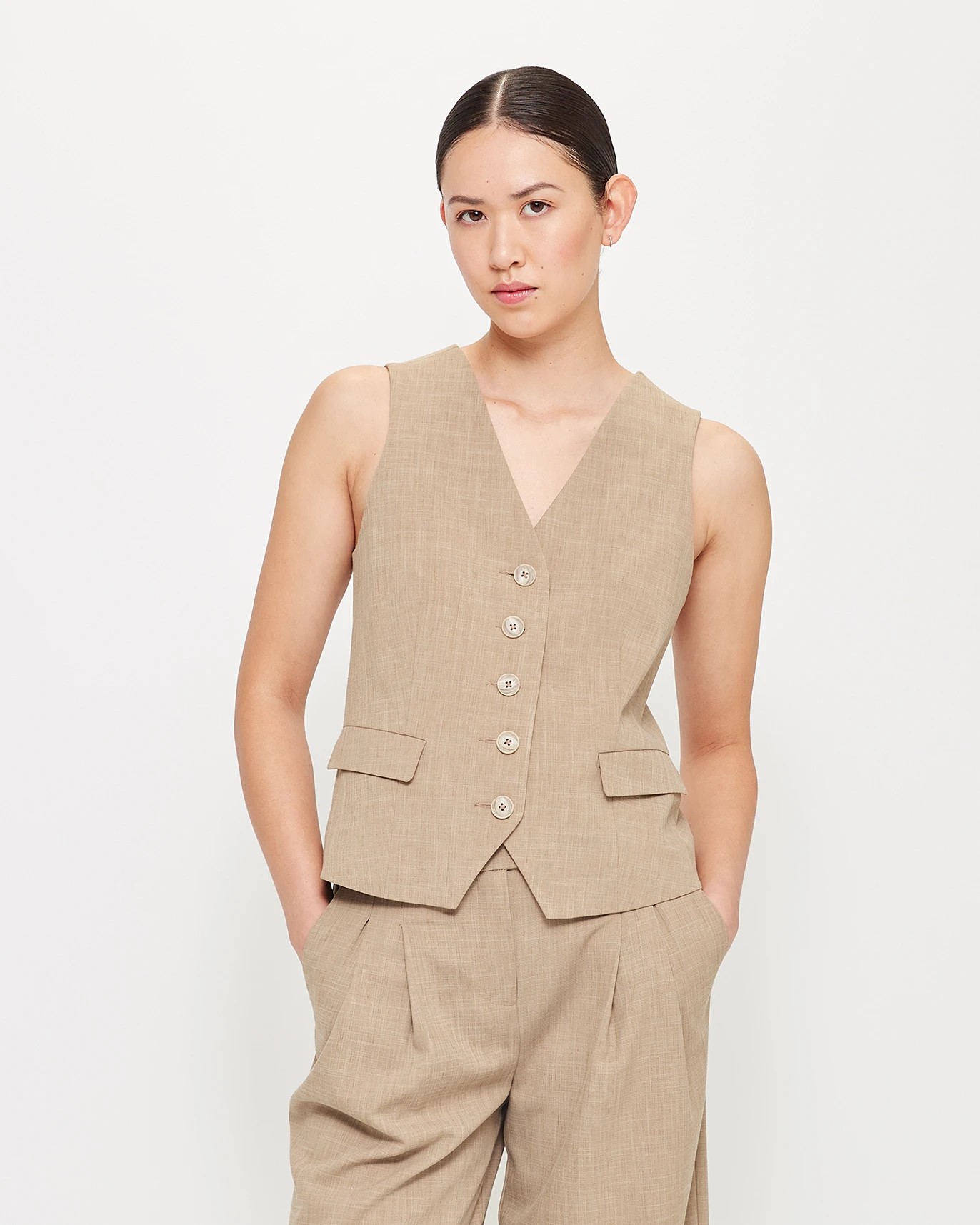 Introducing our newest waistcoat! This lined layering waistcoat is perfect for your next day out. With a v-neckline, sleevless design, and thick shoulder straps, this waistcoat can be worn open or closed. The button-through front and front fold-over top pockets make this waistcoat both stylish and functional. The straight hemline and stretch fabric blend make this waistcoat both comfortable and stylish. Whether you're headed to the office or the outdoors, this waistcoat is a must-have for your wardrobe.