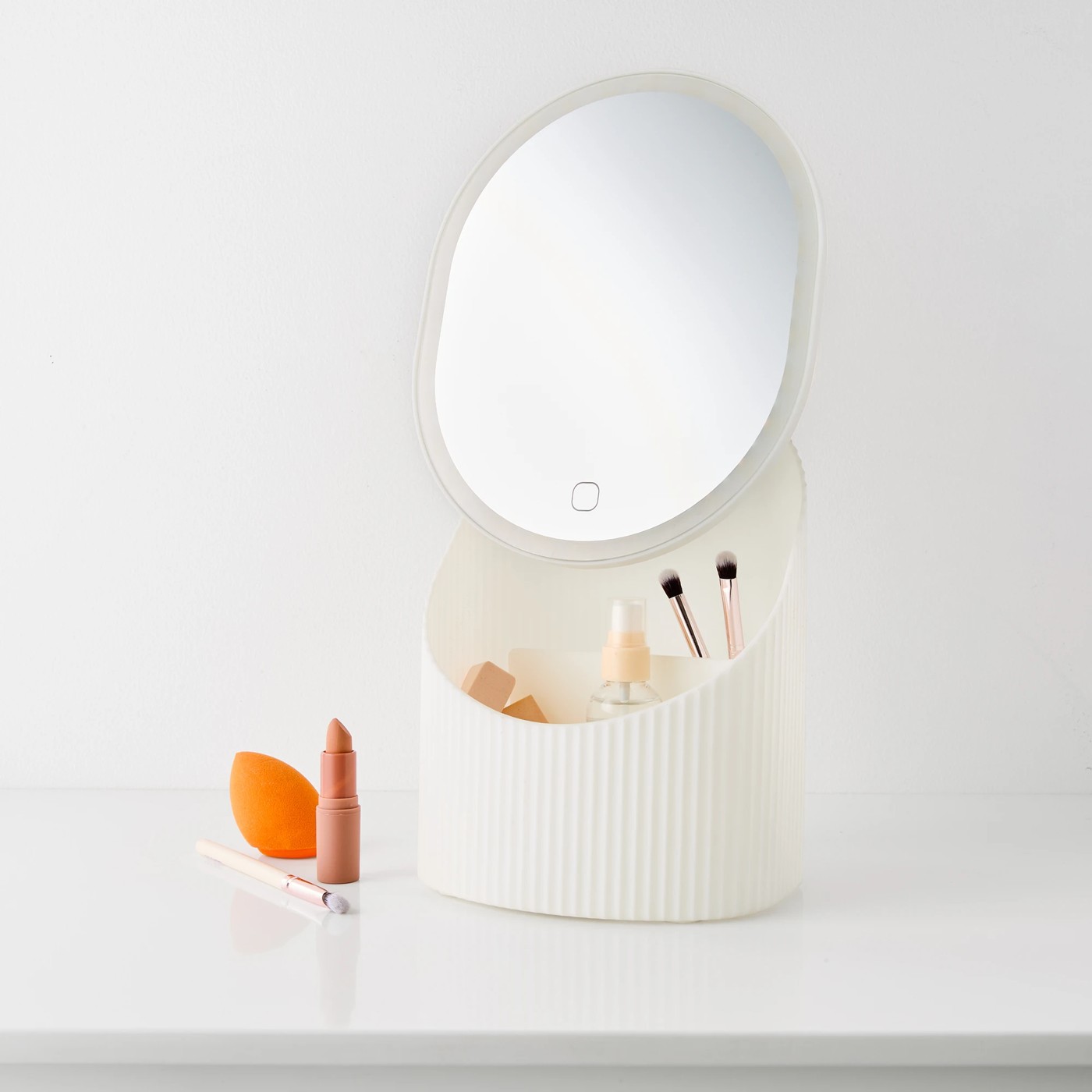 Brighten up your mornings with a stylish LED mirror that seamlessly blends functionality with modern flair. With its built-in lighting and adjustable brightness, you will have the perfect illumination for getting ready whether you’re in the bedroom or bathroom. The swivel design makes it easy to find your ideal angle, while handy storage keeps your essentials close by. Rechargeable via USB, this mirror is always ready to use and the elegant white finish complements any decor. Transform your daily routine and enjoy a clear, well-lit reflexion every time. Try it today and see just how convenient your beauty space can become.