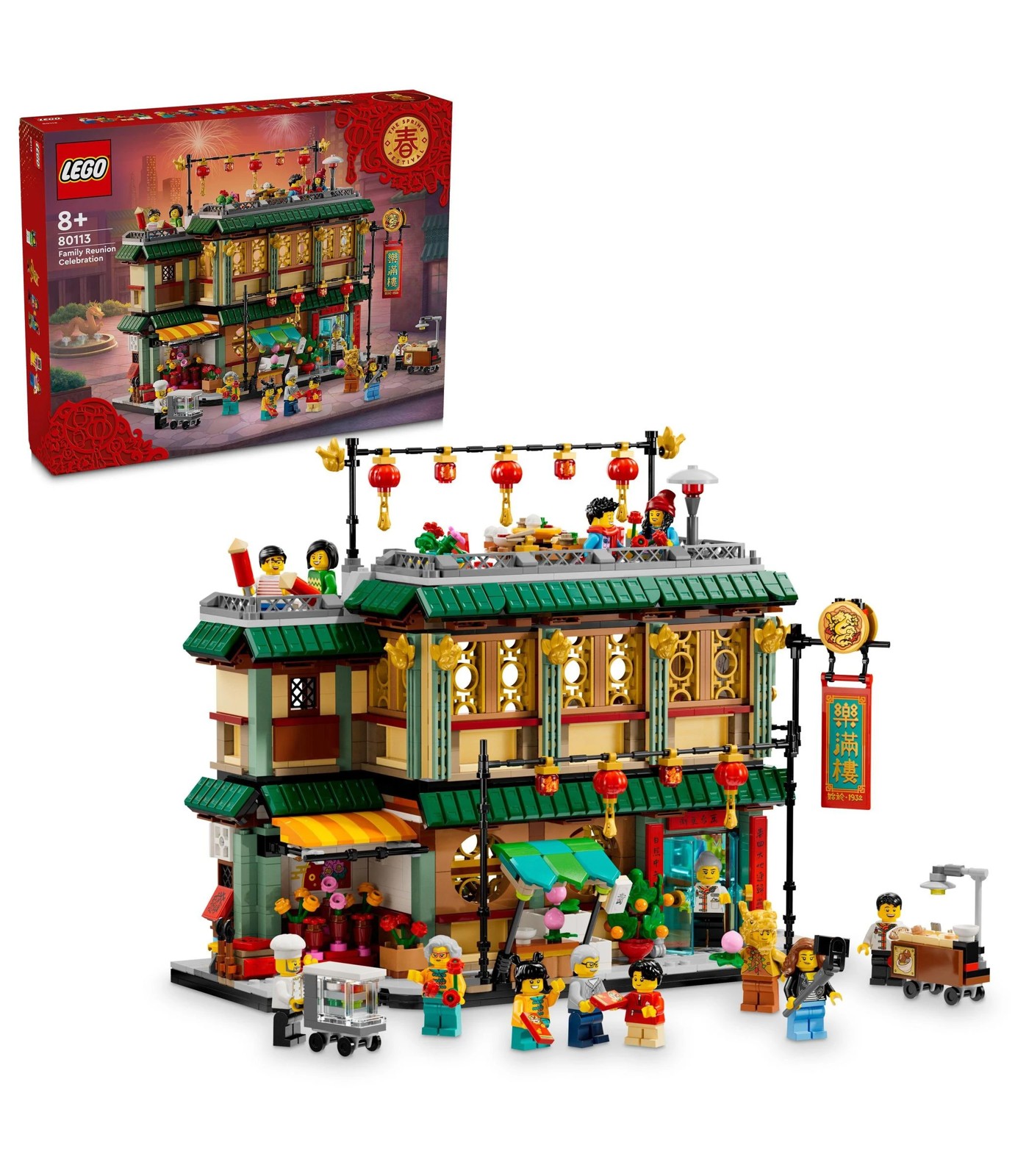 Capture the joy of a LEGO® Spring Festival Family Reunion Celebration (80113) with this restaurant playset for kids aged 8 and over. The buildable toy model of a traditional Chinese-style restaurant is designed for easy access and play with the authentically detailed kitchen, reception area, dining room (including a buildable karaoke machine) and bathroom. The LEGO restaurant’s rooftop dining area is perfect for a romantic dinner to celebrate the Year of the Dragon, with a table for two, buildable patio heater, flowerpot, hanging lanterns and fireworks. There is also a buildable flower shop, dim sum toy cart and street food cart to inspire creative play.