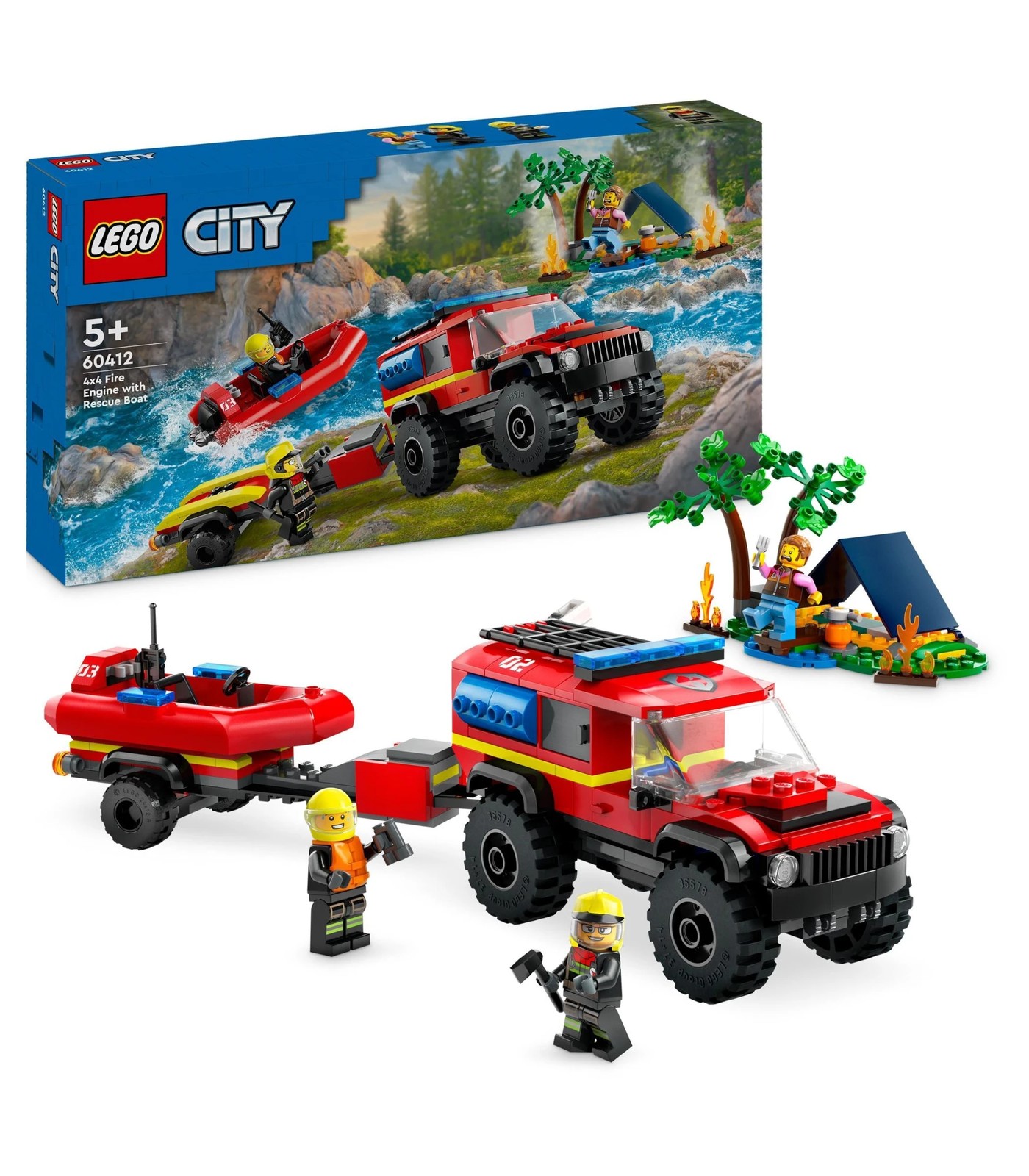 Get ready for action-packed firefighting play with this exciting LEGO City 4x4 Fire Engine and Rescue Boat playset.