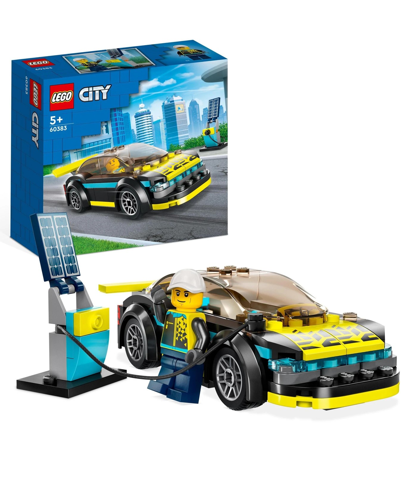 Kids who like toy cars will love the LEGO City Electric Sports Car (60383), featuring a futuristic design with neon-yellow detailing, cool wheels and a large rear spoiler. This playset also includes a toy charging station and a driver minifigure for fun role play.