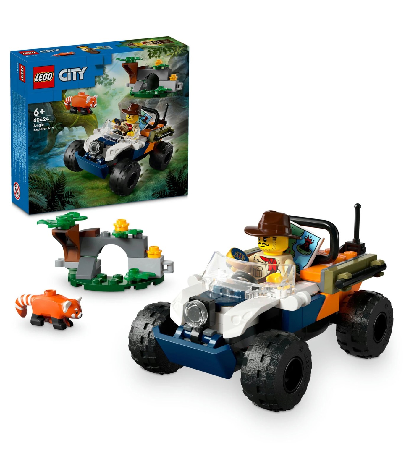 Treat your budding wildlife enthusiast to the LEGO® City Jungle Explorer ATV Red Panda Mission (60424) vehicle toy for ages 6 and over. Kids get to join an intrepid explorer for exciting jungle adventures aboard a rugged ATV. This set also includes a jungle scene, an explorer minifigure and a red panda figure for imaginative play and storytelling.