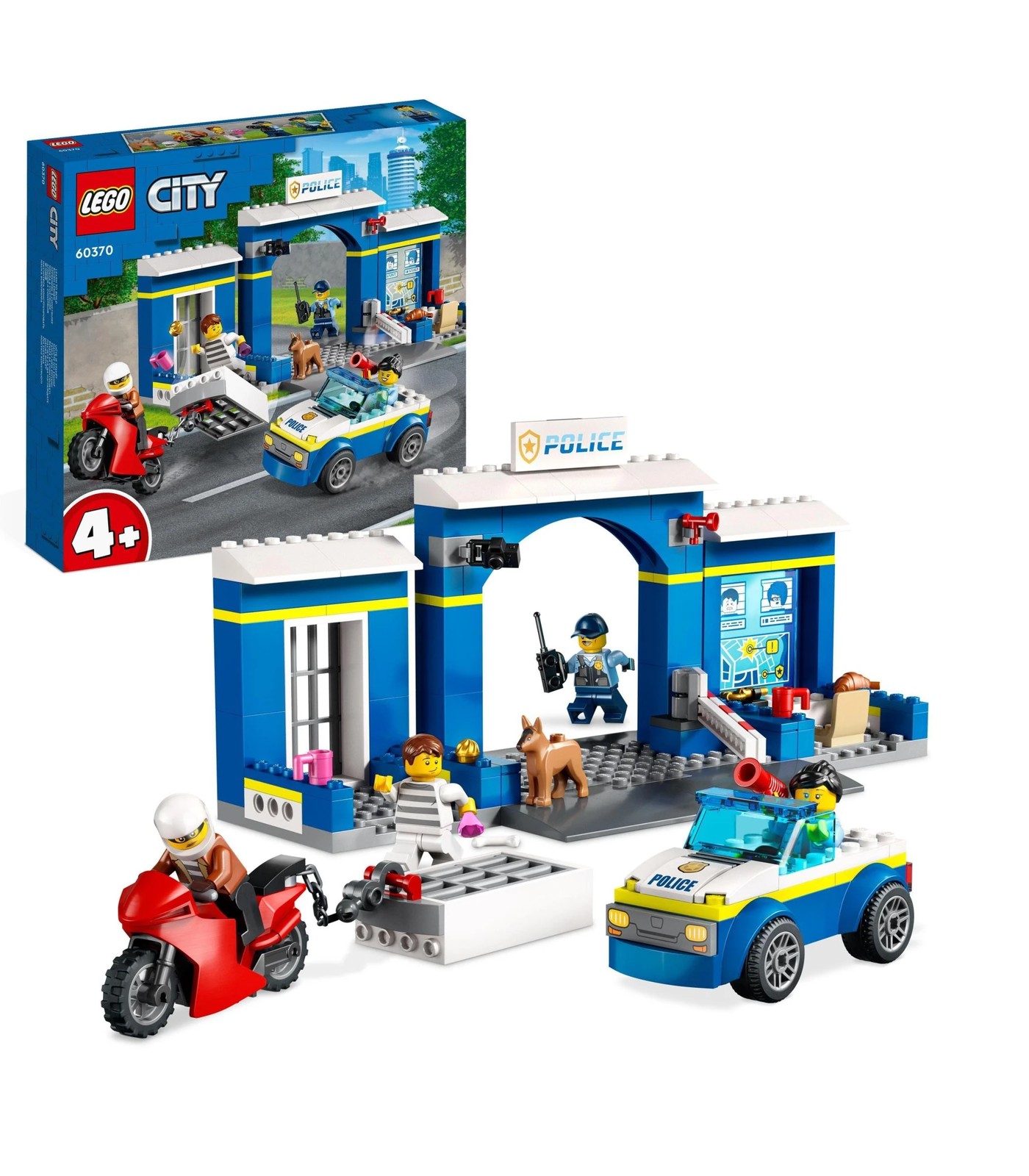 Introduce kids to a world of imaginative play with this LEGO City Police Station Chase (60370) toy playset for kids aged 4+. The station building features a raisable barrier and houses an office and a jail with a breakout function. This set also includes a police car and a crook’s getaway motorcycle, plus 2 police officer and 2 crook minifigures.
