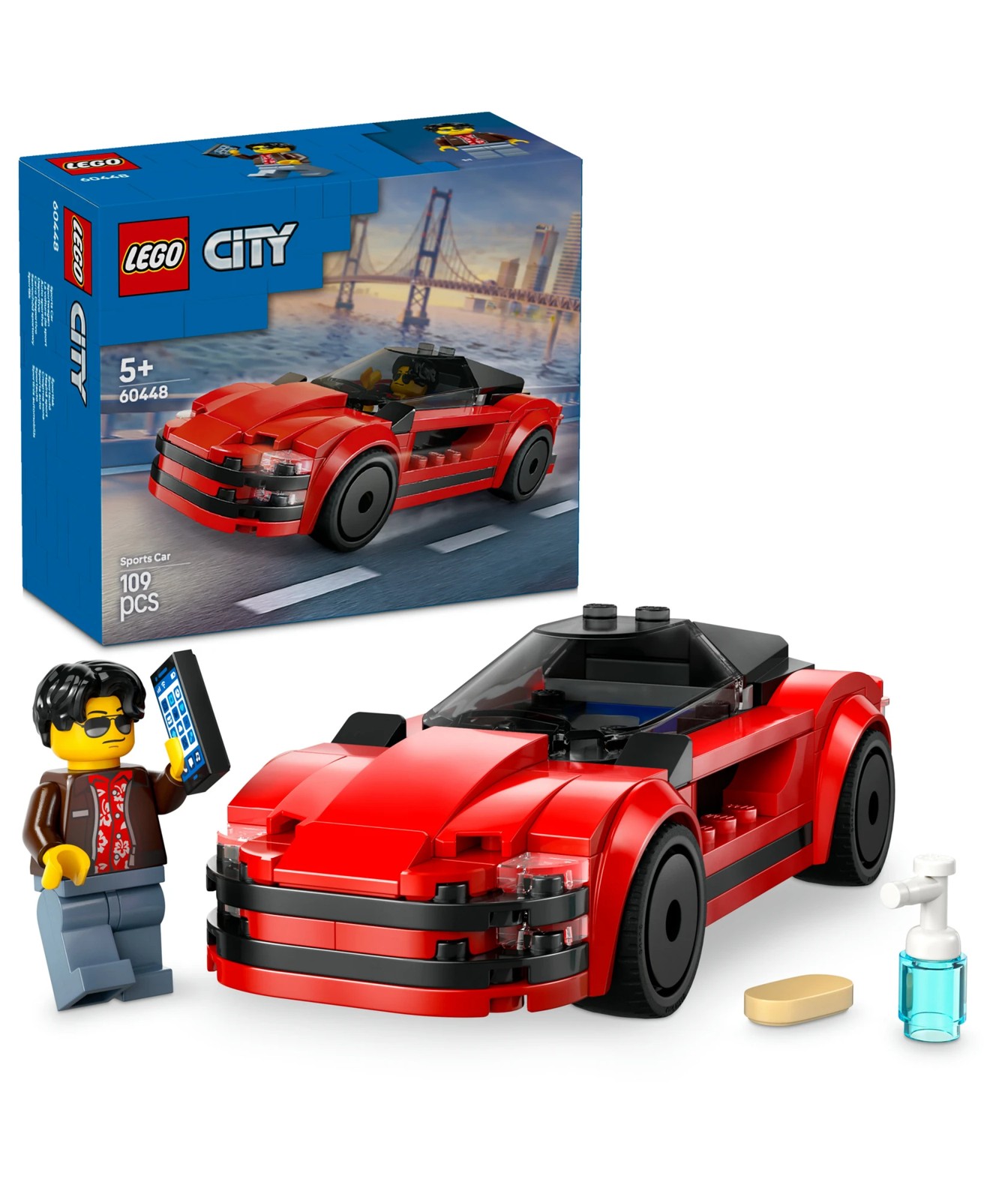 Treat your young car enthusiast to the LEGO® City Red Sports Car vehicle set for ages 5 and over (60448). This sleek supercar toy features cool alloys, low-profile tyres and a tinted cockpit. Kids can pop the driver minifigure behind the wheel and store the included toy mobile phone and cleaning accessories in the boot before taking to the open road for high-speed adventures!