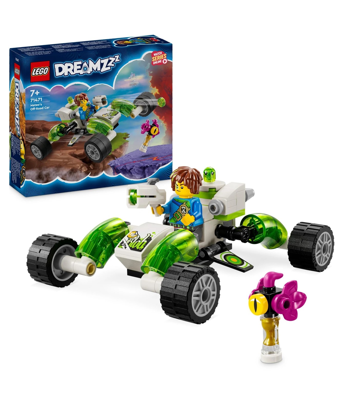 Explore the thrilling world of LEGO® DREAMZzz with Mateo's Off-Road Convertible toy (71471). Join hero figures Mateo and Z-Blob on an epic adventure to retrieve a magical hourglass.