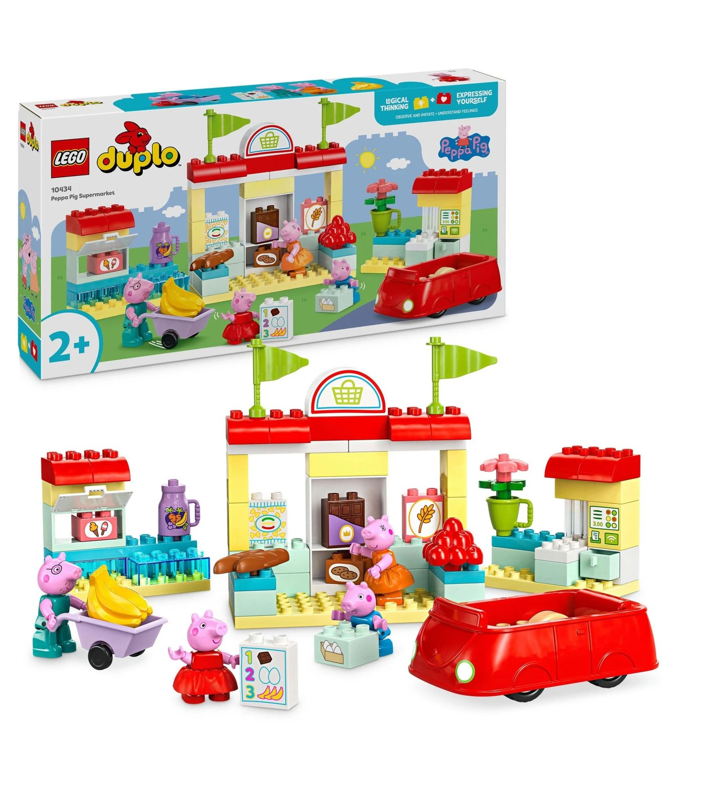 Help girls and boys aged 2 and over role-play a trip to the shop with the LEGO® DUPLO® Peppa Pig Supermarket (10434) toy. Preschoolers become one of the family as they drive to buy food in the iconic red car from the show.