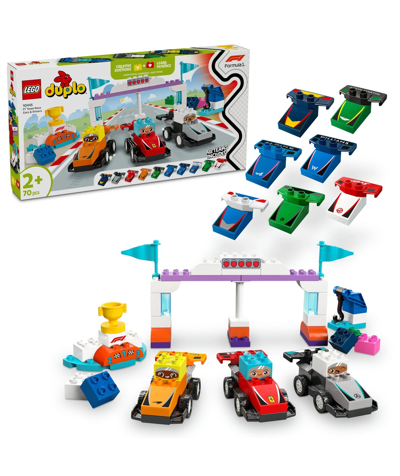 Fire up your engines and get ready to race with the F1® Team Race Cars & Drivers (10445) building toy. This fun family activity lets fans and their junior pit crew recreate the thrill of Formula 1® racing.