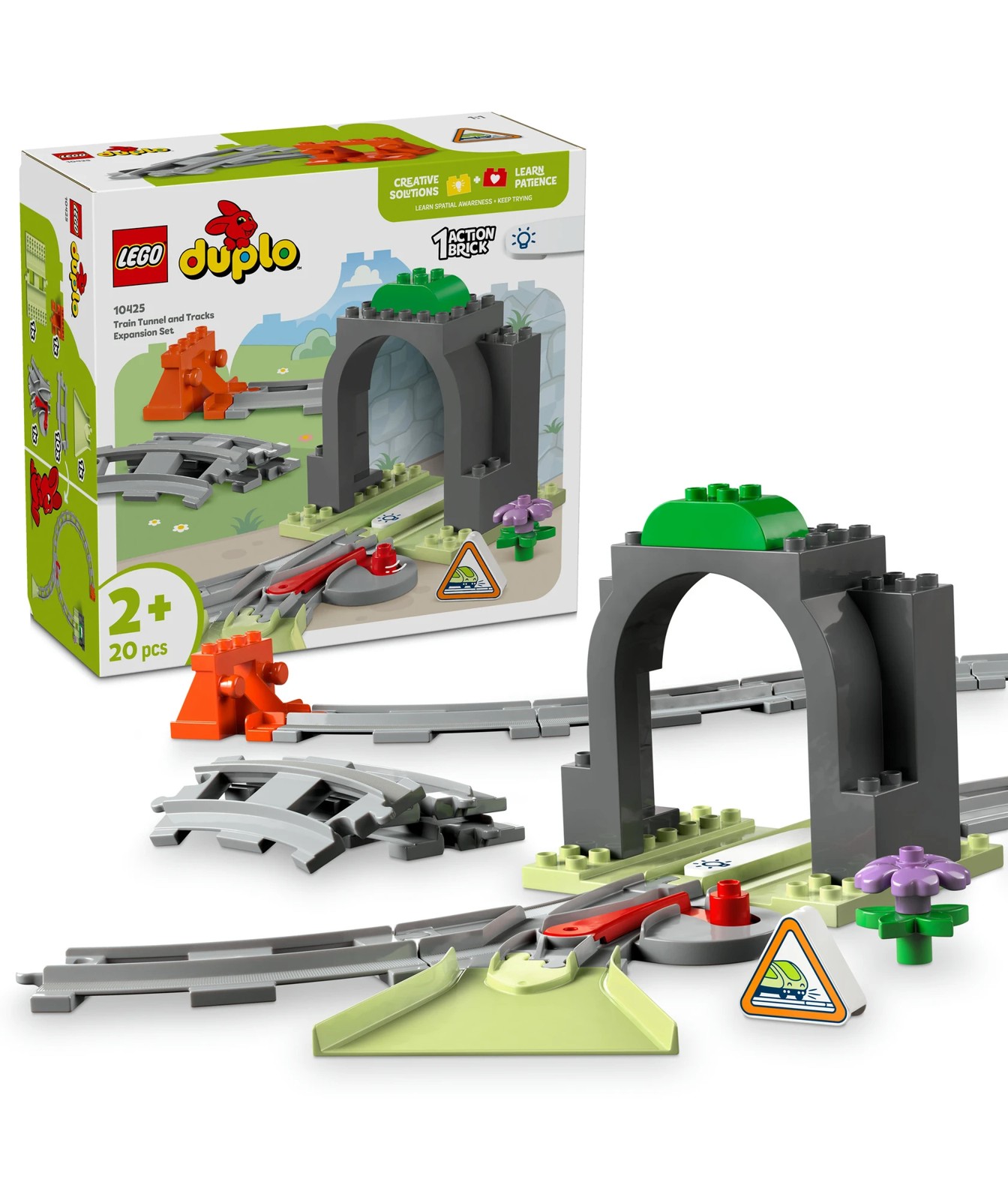 Extend toddlers’ train adventures with the Train Tunnel and Tracks Expansion Set (10425) toy for toddlers. Little ones aged 2+ grow their learning adventures as they add a tunnel and extra track to their LEGO® DUPLO® Town interactive toy train sets (10427 and 10428, sold separately).