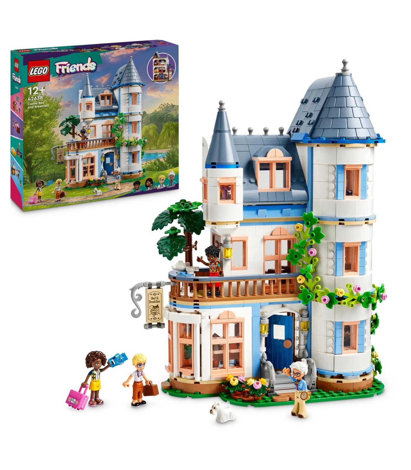 Inspire kids and teens aged 12 and over to build their own French-style château with this Castle Bed and Breakfast (42638) toy hotel playset. The detailed 3-storey model comes with 4 LEGO® Friends mini-dolls, a dog figure and lots of accessories so kids can set the stage for endless guest adventures.