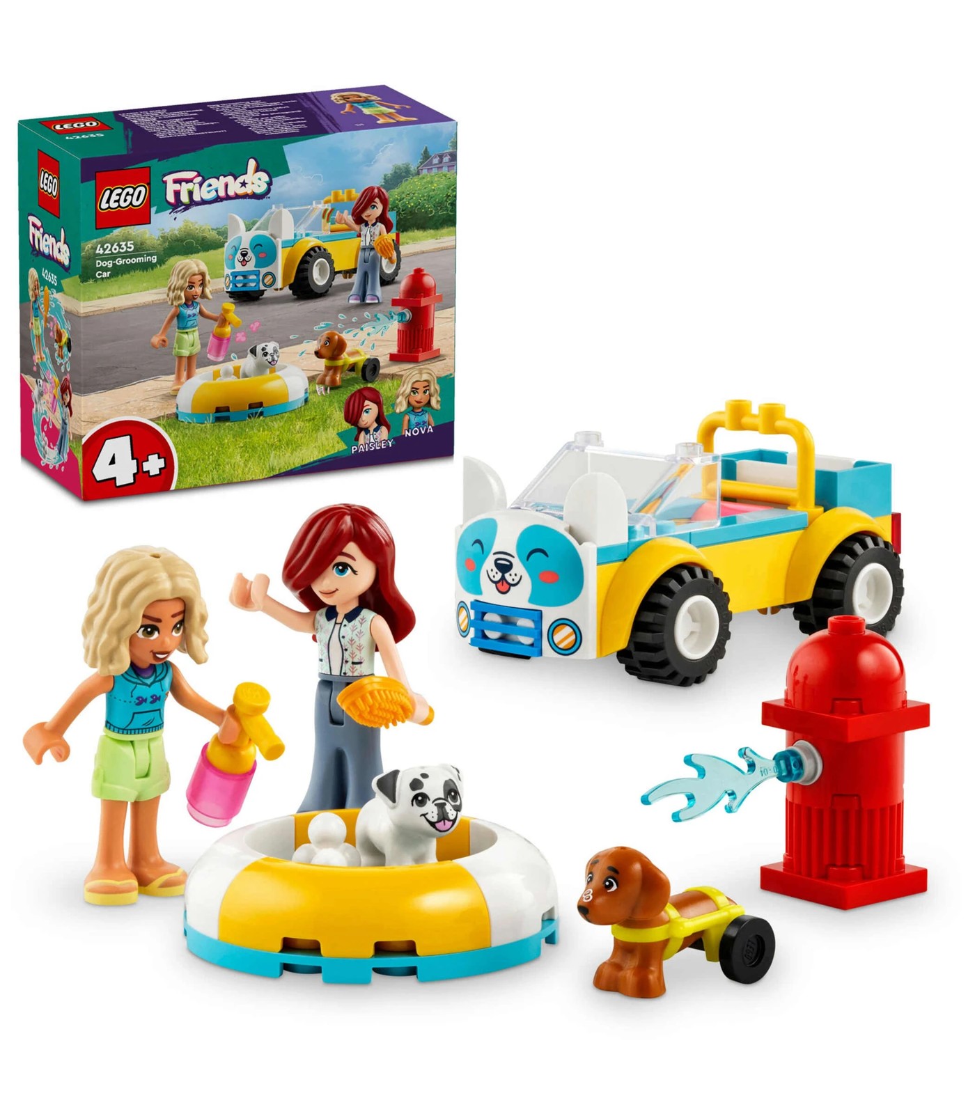 The LEGO® Friends Dog-Grooming Car (42635) vehicle playset makes a great gift idea for kids aged 4+ who love animal care toys. Girls and boys can enjoy hours of imaginative play with the 2 mini-dolls, 2 dog figures, a buildable car, pool and lots of pet care accessories.