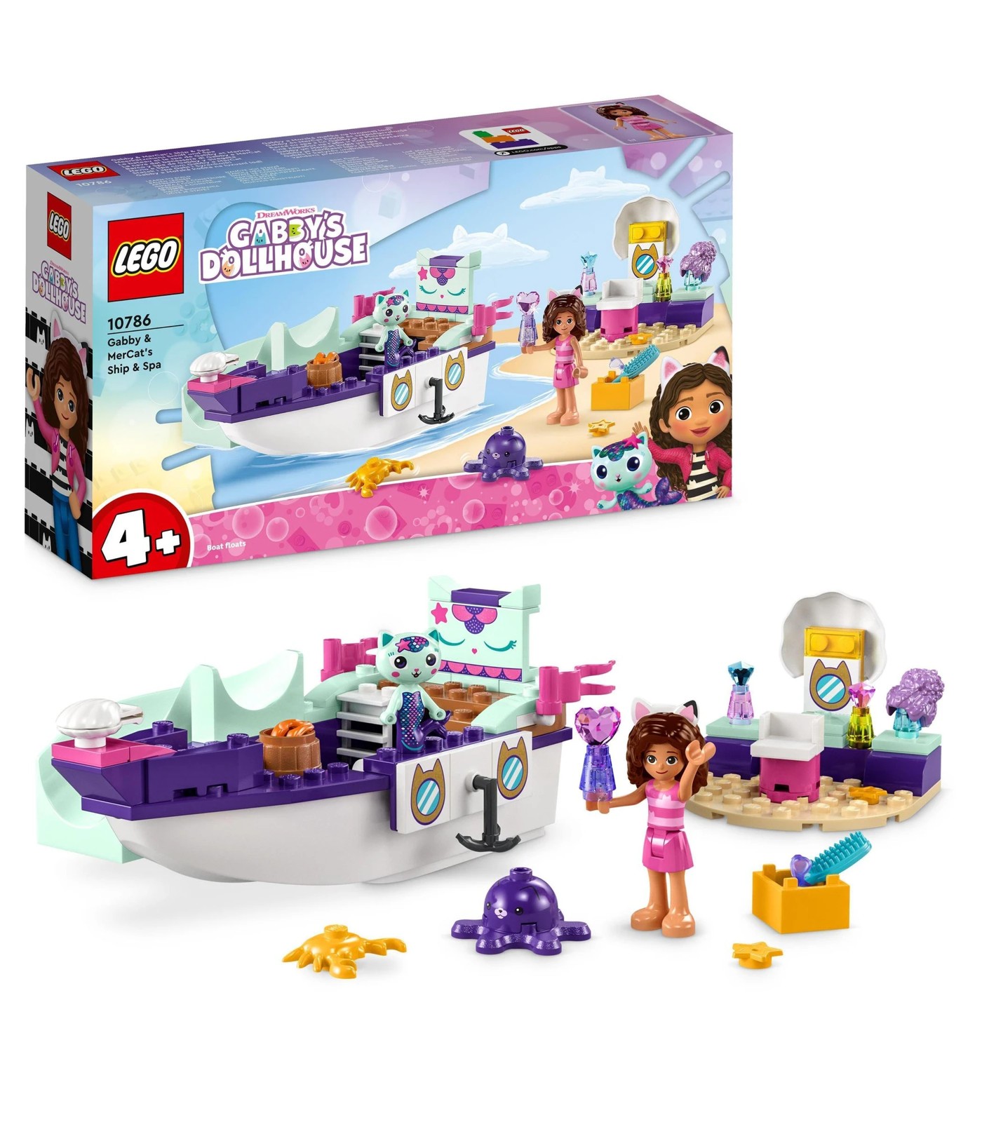 LEGO® Gabby & MerCat’s Ship & Spa (10786) for kids aged 4+ is all about fun with friends, looking great and luxurious treats! Fans of DreamWorks Animation’s Gabby's Dollhouse are sure to love this glamorous playset.