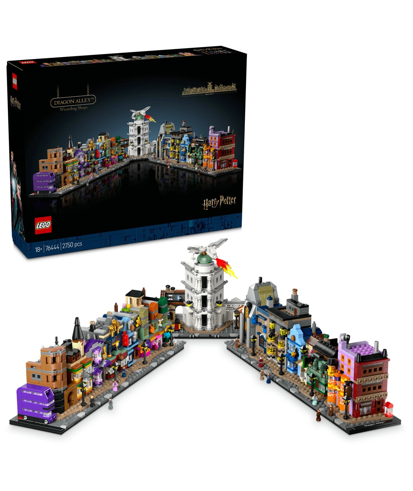 Escape to a magical world with this intricately detailed, microscale LEGO® Harry Potter™ display model of the Diagon Alley™ wizarding shops (76444). This LEGO brick-built wizard set invites adult fans of Harry Potter fantasy adventures to recreate iconic Diagon Alley stores, including Weasley’s Wizard Wheezes™, Florean Fortescue’s Ice Cream Parlour, Ollivanders™, Mr. Mulpepper’s Apothecary, plus Gringotts™ Wizarding Bank, the Leaky Cauldron and The Daily Prophet HQ. Each building has instantly recognisable exterior details and contains delightful Easter eggs inside.