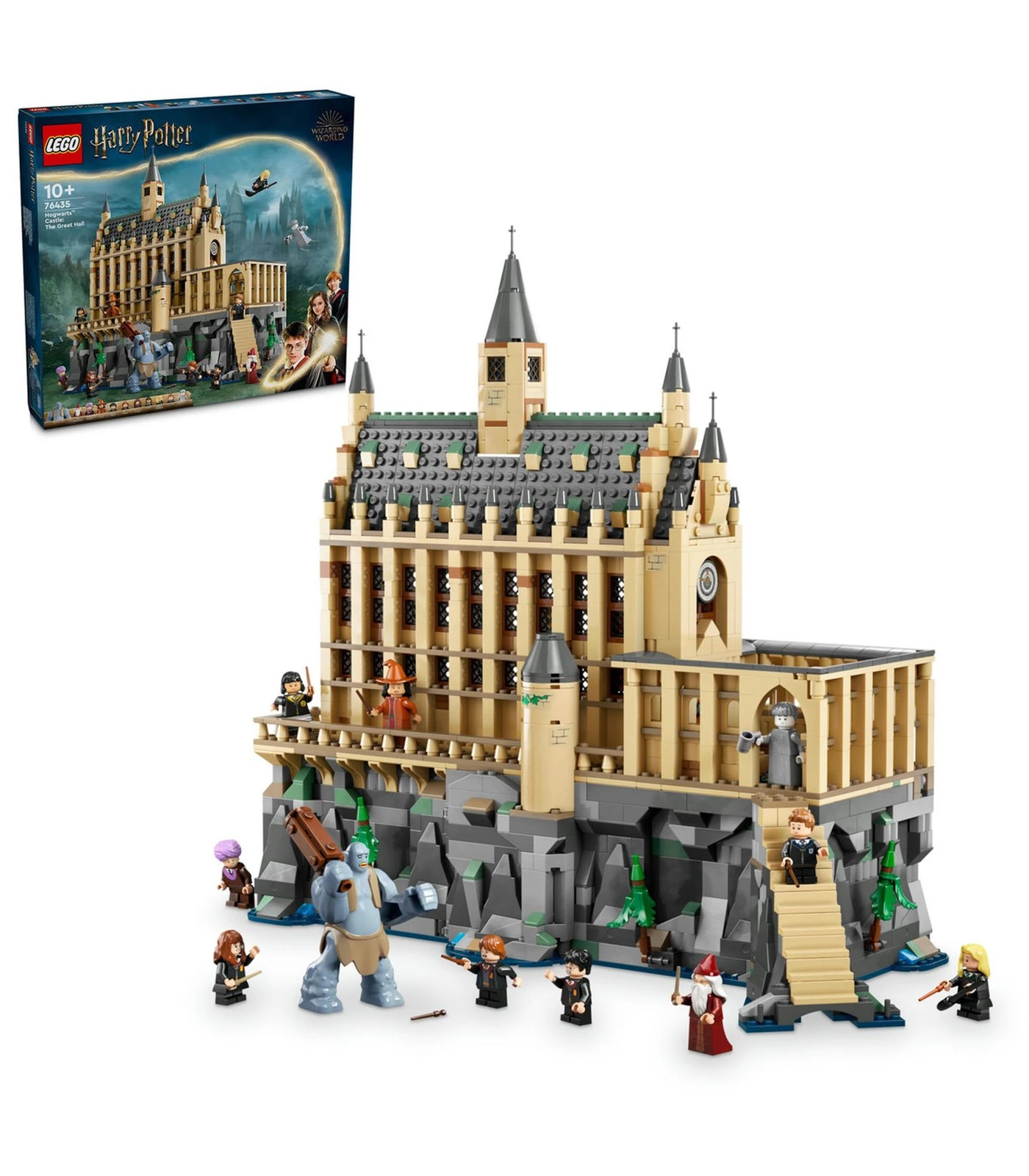 Invite your young wizard, witch or Muggle™ to join students and teachers in the Great Hall with this epic LEGO® Harry Potter™ Hogwarts™ Castle toy playset for kids (76435). A magical gift for boys, girls and any Harry Potter fan aged 10 and up, the castle build features the largest-ever LEGO brick recreation of the Great Hall, which is packed with authentic details including floating candles and the illusion of sky. Also explore the courtyard and dungeon with a secret entrance and 3 detailed rooms – a bathroom, corridor and Hufflepuff™ common room that each slide out for easy play. This collectible set features 11 characters, including Harry Potter, Hermione Granger™, Albus Dumbledore™ and a mountain troll for creative play, plus 5 of 14 random collectible Hogwarts portraits for display. This playset is part of a LEGO Harry Potter collection of modular sets (sold separately) that connect to create the most detailed brick-built Hogwarts Castle scene ever.