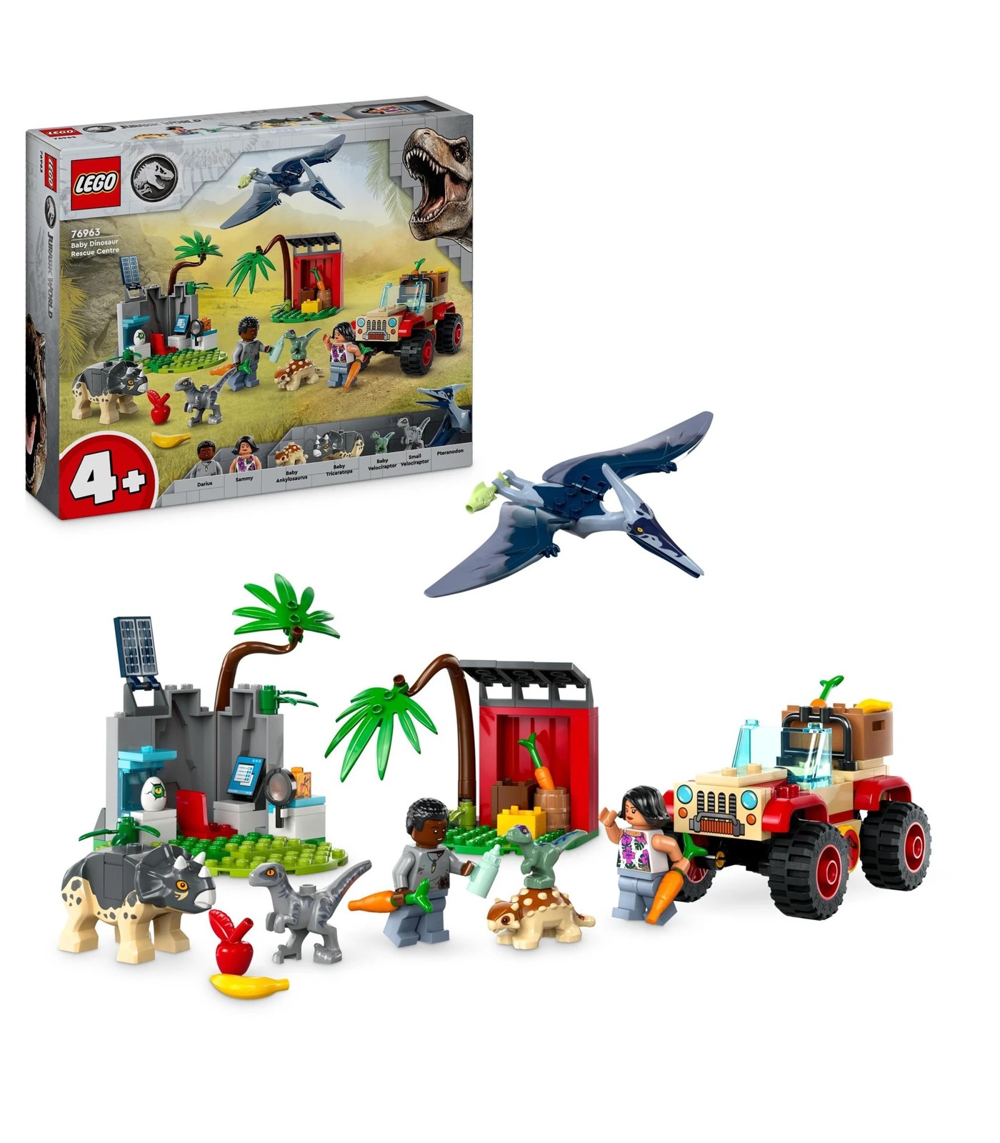 ung fans aged 4+. Care for and play with adorable dinosaur babies while learning the art of building with LEGO®. The set includes an off-road vehicle and a research area with a cave wall, both equipped with Starter Brick elements. Also included are a feeding station, 2 minifigures, baby Ankylosaurus, Triceratops, and Velociraptor figures, and small Velociraptor and adult Pteranodon kids' dinosaur toy figures to kickstart the imaginative play. Picture instructions are included, and for added digital fun, the LEGO Builder app offers intuitive zoom and rotate tools. LEGO Jurassic World 4+ sets not only introduce children to their favourite film and TV characters but also make remarkable dinosaur LEGO set gifts.