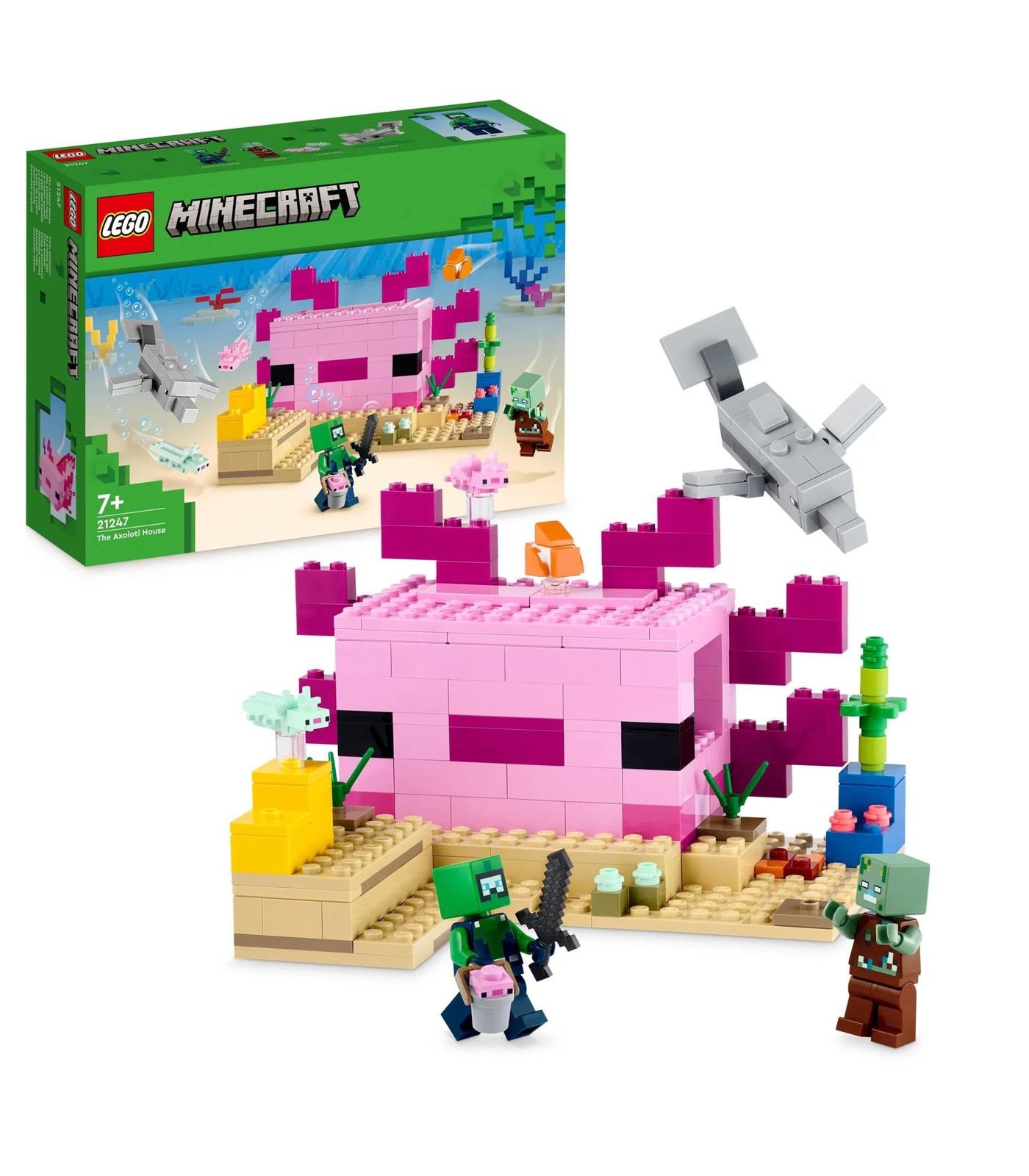 Treat Minecraft® players to hands-on underwater adventures featuring one of the game’s cutest creatures – the axolotl. LEGO® Minecraft The Axolotl House (21247) brings Minecraft’s creative construction and imaginative action into the real world for players aged 7 and over.