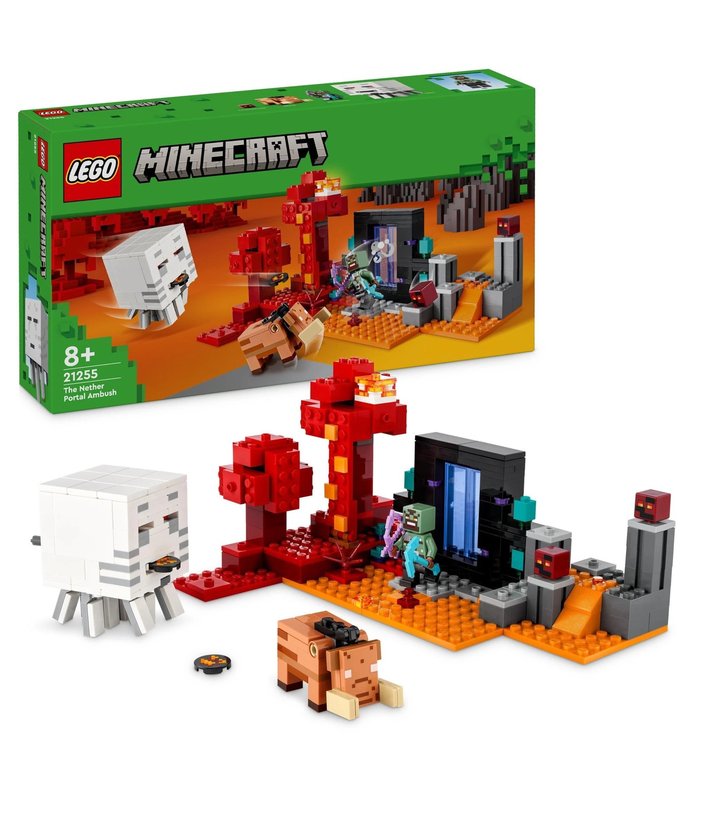 Experience the exciting world of Minecraft with the LEGO Minecraft The Nether Portal Ambush 21255 toy set.