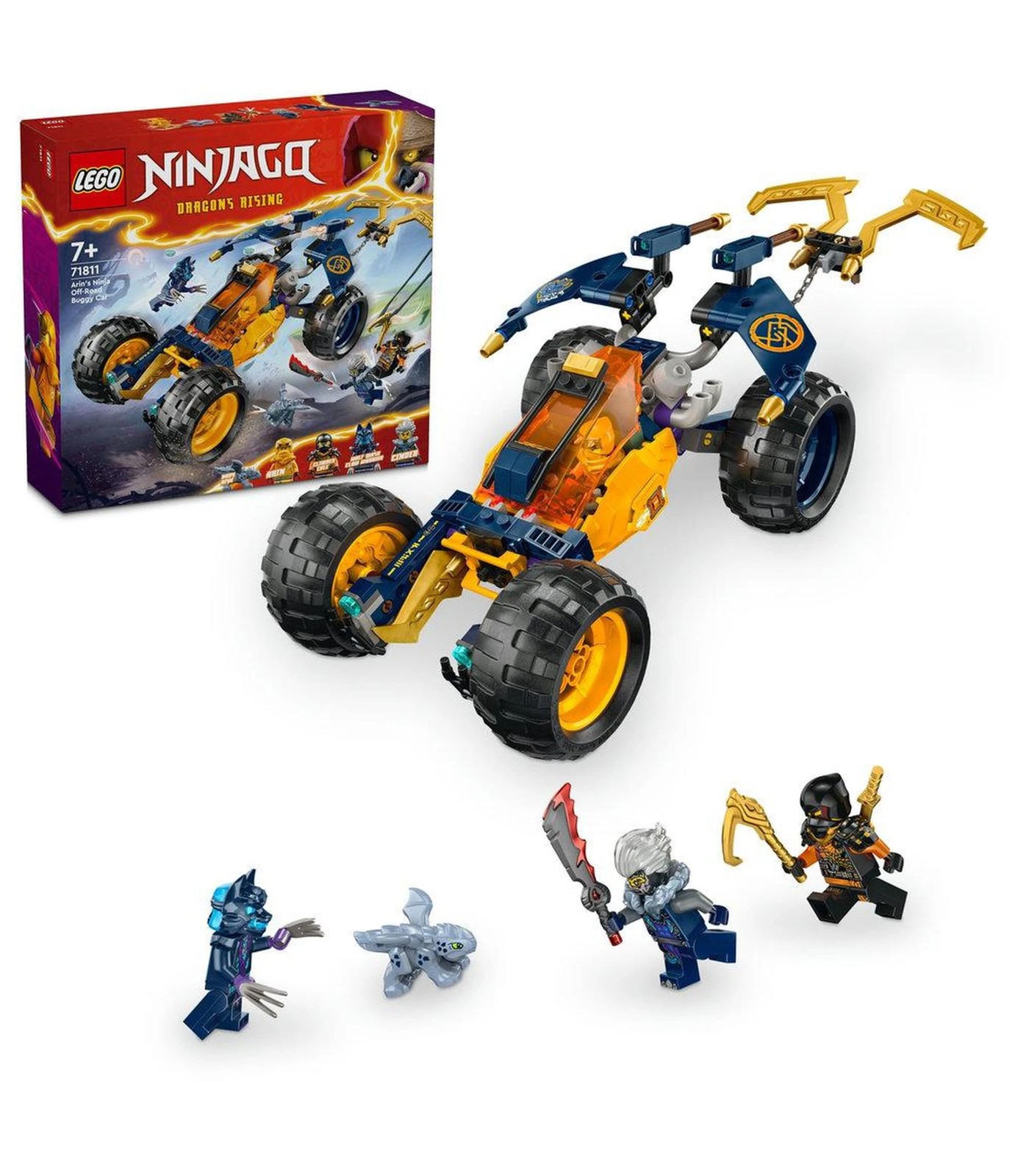 Experience thrilling battles from season 2 of NINJAGO Dragons Rising with the LEGO NINJAGO Arin's Ninja Off-Road Buggy Car (71811). This fun-filled adventure playset allows children aged 7+ to immerse themselves in a world of ninja action.