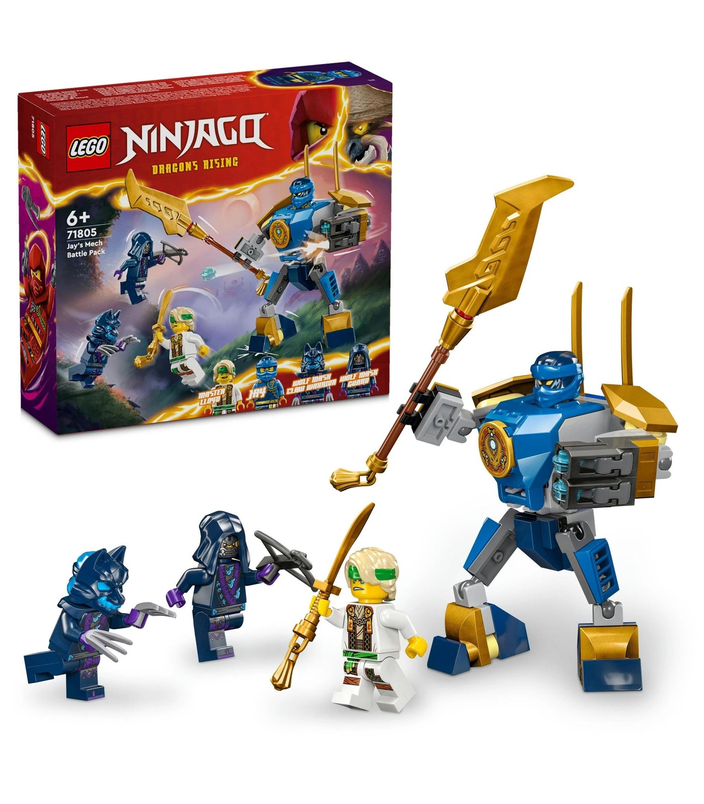 Experience thrilling action scenes from season 2 of the NINJAGO Dragons Rising TV show with Jay's Mech Battle Pack (71805) adventure toy.