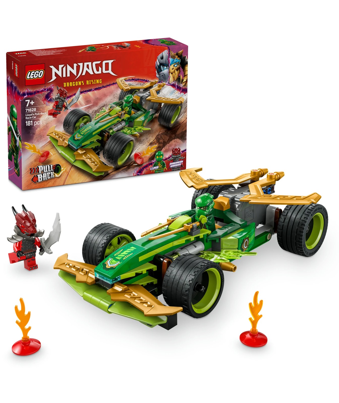 Delight your little ninja with the first ever NINJAGO® pull-back race car toy! Boys and girls aged 7 and over can recreate superfast action from season 3 of the NINJAGO Dragons Rising TV show with Lloyd’s Pull-Back Race Car (71828) by pulling it back, releasing it and watching it speed forwards. The sleek race car has 4 tyres, a cockpit for a minifigure and is decorated with green lightning blades.