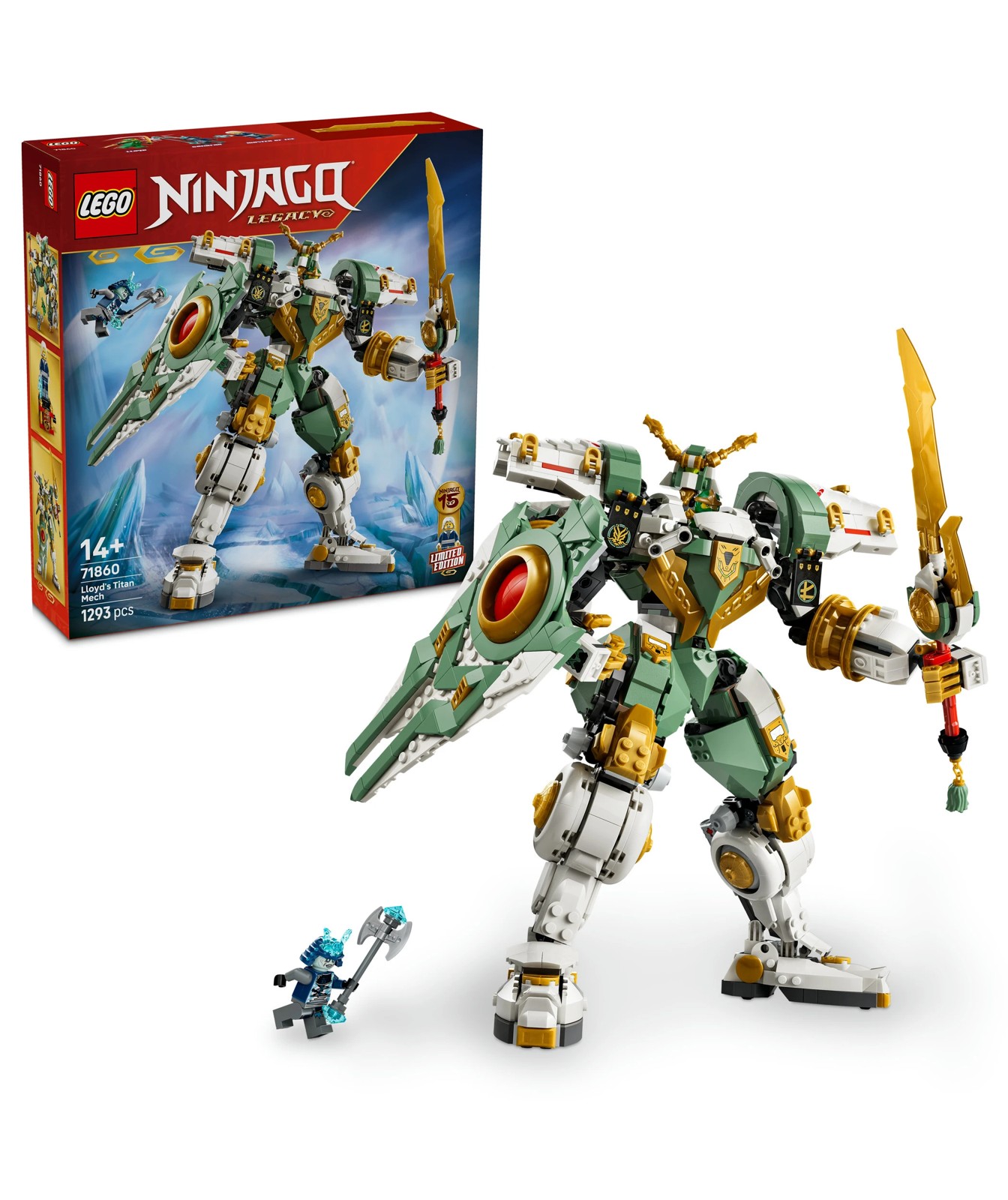 ACTION FIGURE SET – Lloyd’s Titan Mech 15th Anniversary (71860) building set for boys, girls and nostalgic fans aged 14 and over to celebrate 15 years of the LEGO® NINJAGO® TV show