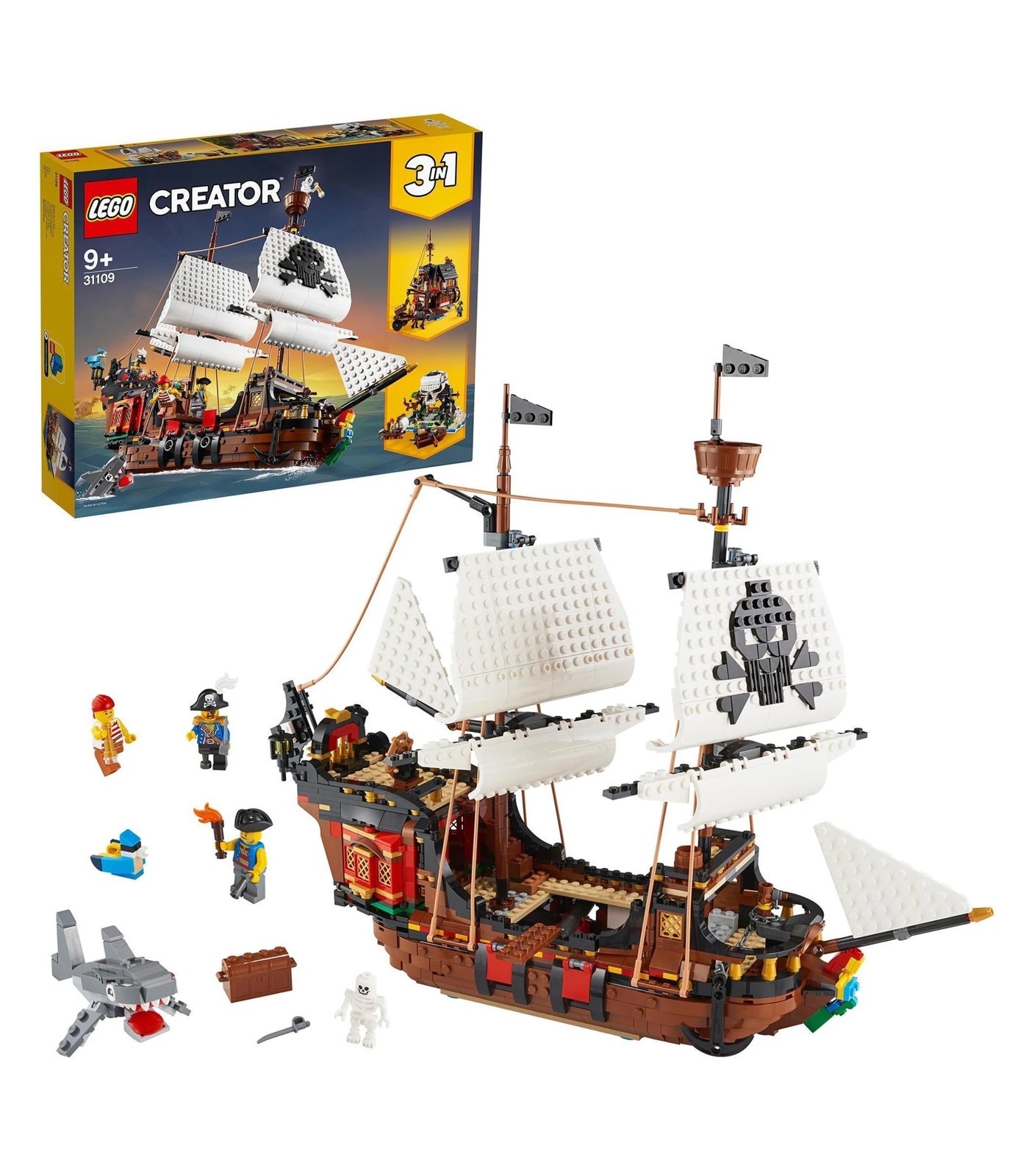 This awesome, detailed set features a pirate ship with moving sails, cannons and a cabin with opening roof and sides, 3 minifigures, buildable figures including a shark and a parrot, plus lots of other brick-built details and cool accessories to jump-start play. Freedom to create and imbb new. Endless play possibilities await LEGO Creator 3in1 sets offer kids differentmodels that are realistic and encourage imaginative play. The models give endless building and play opportunities while helping to spark creativity in children of all ages. The awesome toy sets also make great Christmas gifts or birthday presents for kids.