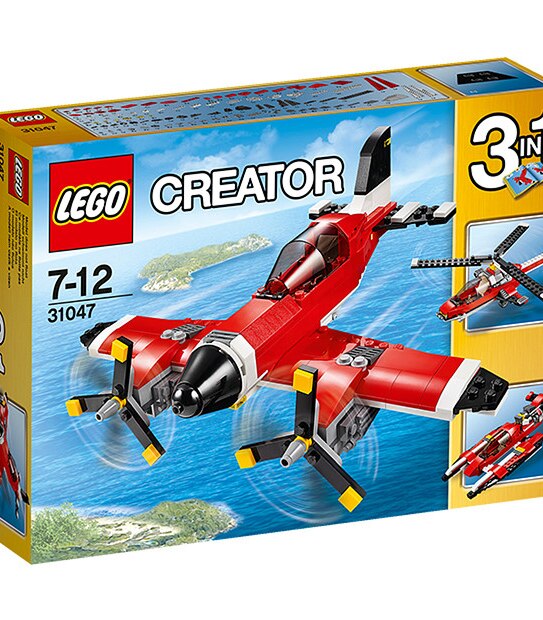 Experience this classic aircraft, featuring a beautiful red, white and black color scheme, spinning propellers and an opening cockpit with room for a minifigure (not included). Climb aboard, zoom down the runway and launch into the air. When you’ve completed your flight, lower the wheels to make a perfect landing! Rebuild to create a high-tech hydroplane or a helicopter.