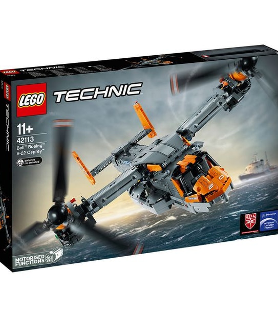 Take to the skies for a daring rescue mission with the LEGO® Technic™ Bell™ Boeing™ V-22 Osprey™. Combining the functions of a helicopter with the performance of an airplane, the iconic Osprey™ tiltrotor aircraft has served in many real-life rescue missions. Build your own motorized model version and see this amazing toy aircraft switch from vertical takeoff to flight mode by rotating the nacelles.